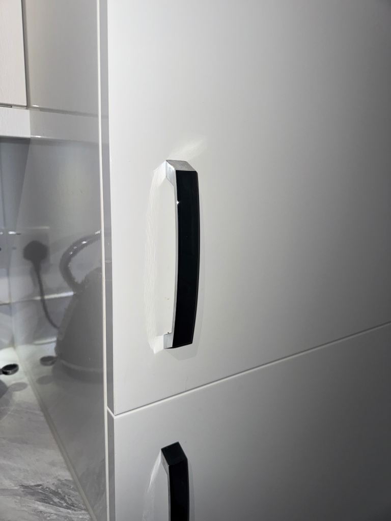 White gloss with silver handles