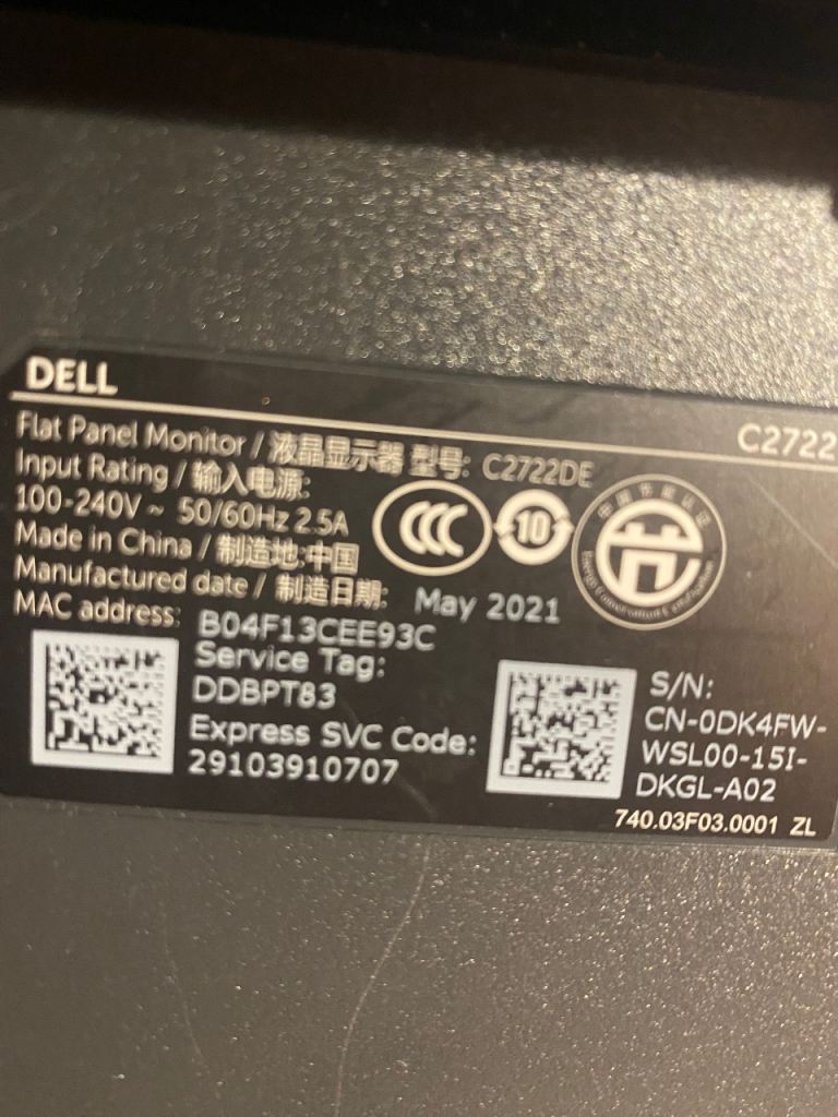 Selling my Dell C2722DE 27-inch monitor. Fully working and in excellent condition with hardly any scratches.