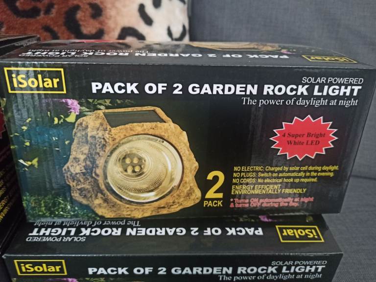 Brand new solar garden lights imitation of rocks. All details on the pictures. Collection only m14 5hz