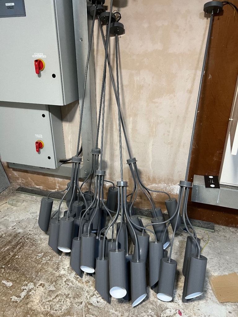 For sales 6 x used pendant lights. Each has 6 bulbs and are large in size. Previous use in a restaurant.