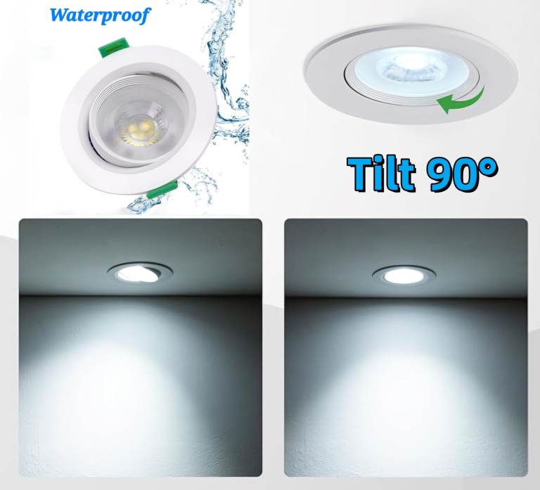 7W LED Downlight, Tilt Angle Adjustable Ceiling Light Spotlight, Waterproof, Super Bright Cool White Light