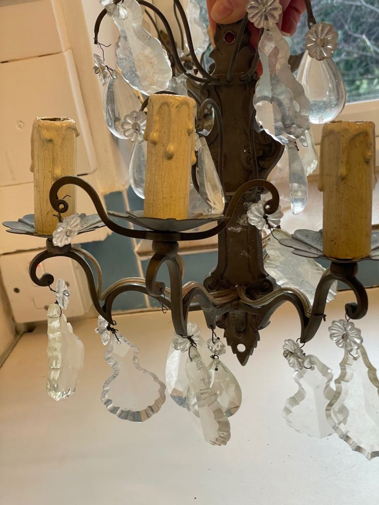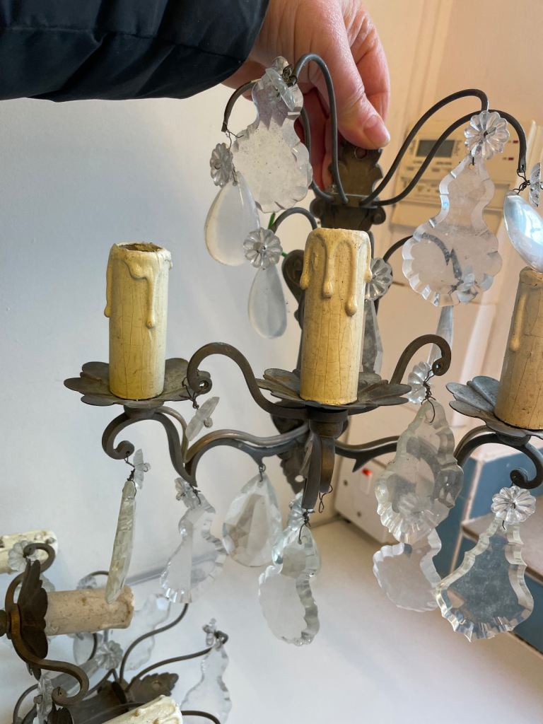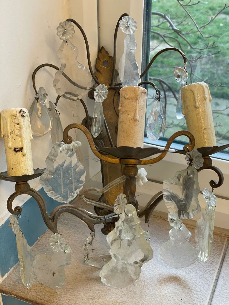 Antique pair of Bronze Wall Sconce/lights With Crystal Drops