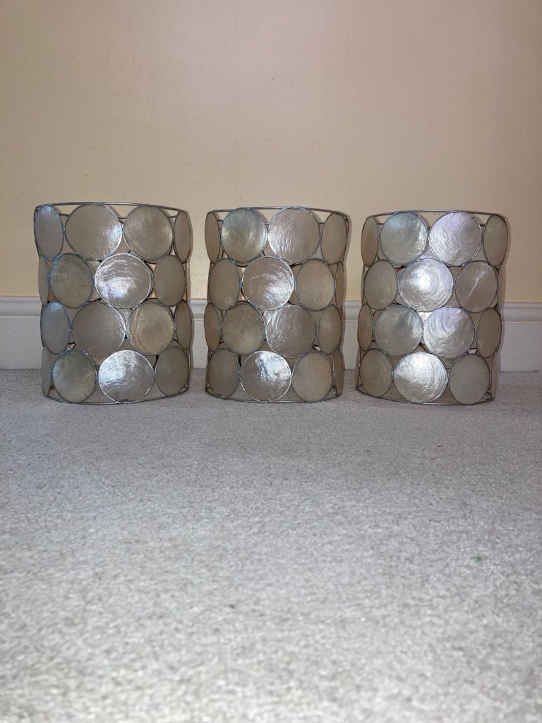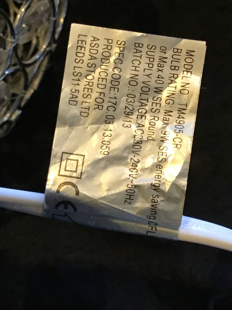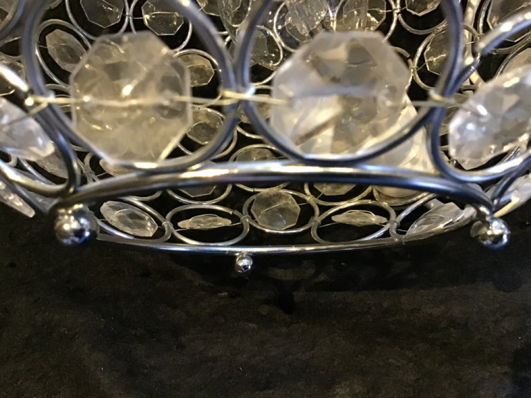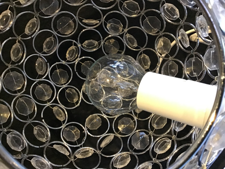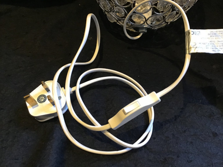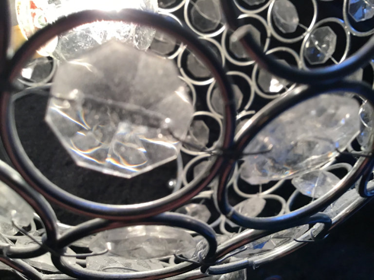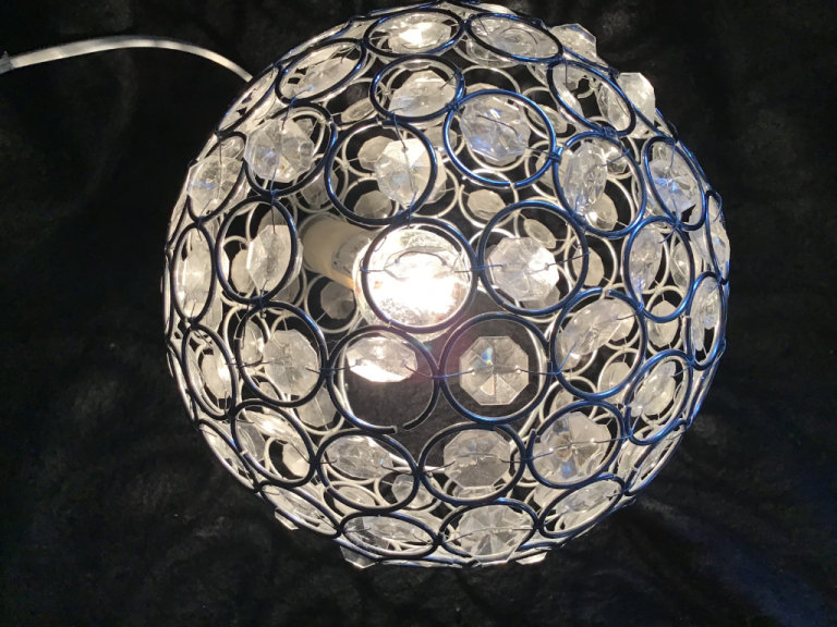 A Bedside / Tabletop / Shelf Light. 8” Diameter Sphere threaded with Crystal Glass Losenges giving a lovely effect. 60w Bulb, Cable, Rocker Switch and Fused Plug.