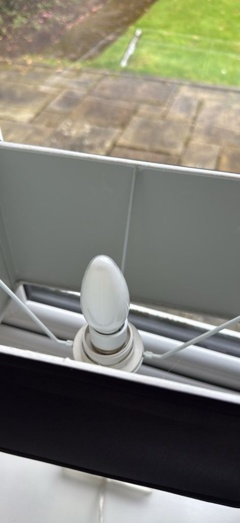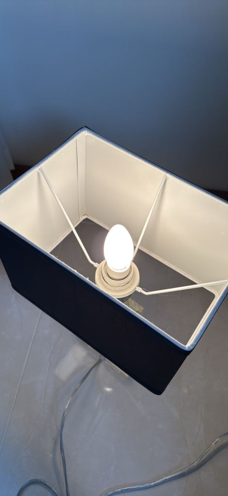 Black rectangular table lamp. Selling with the bulb (low energy bulb)- very bright!