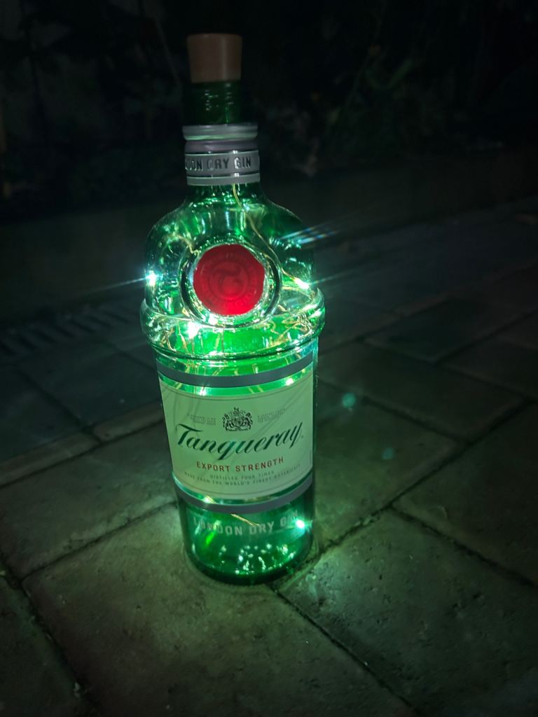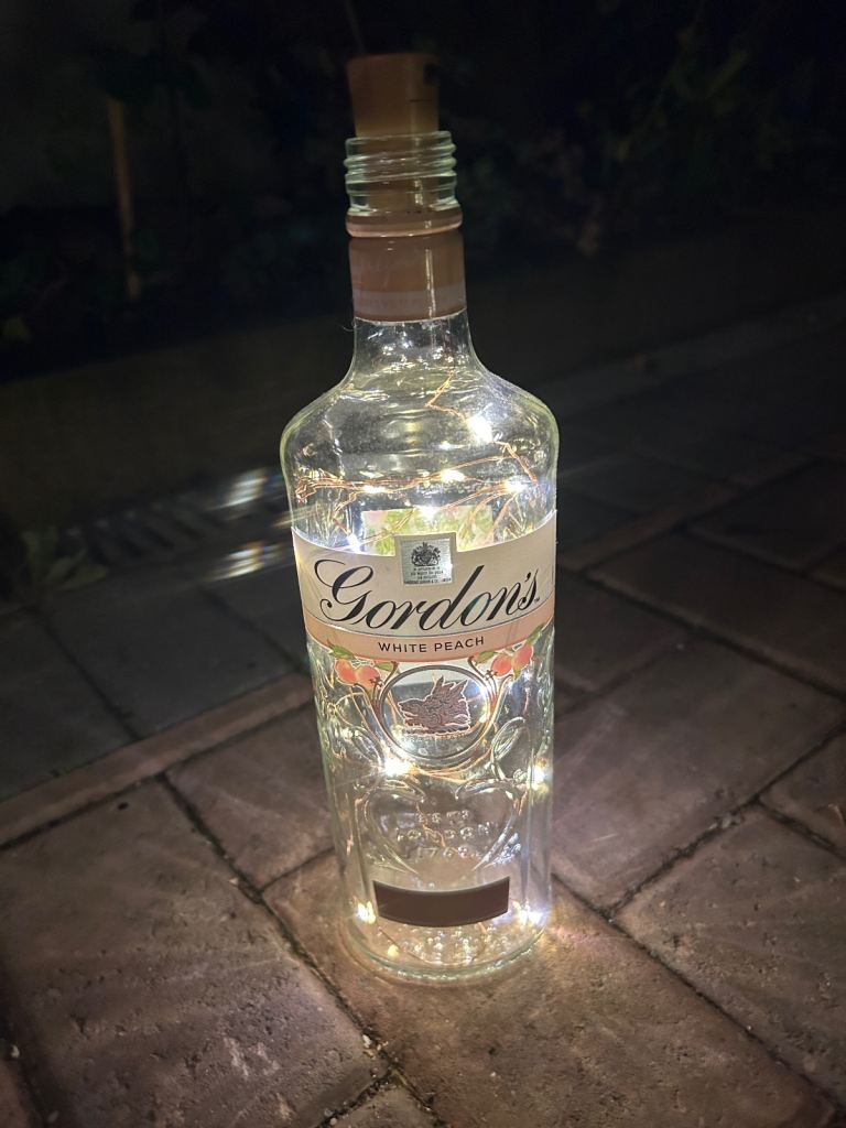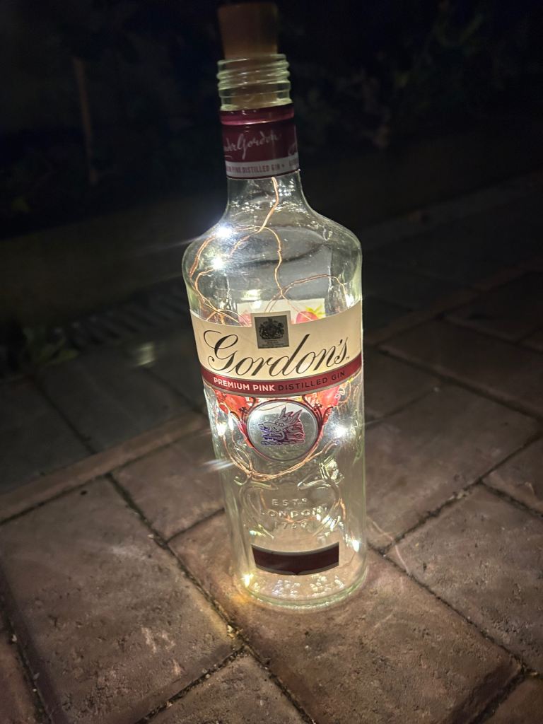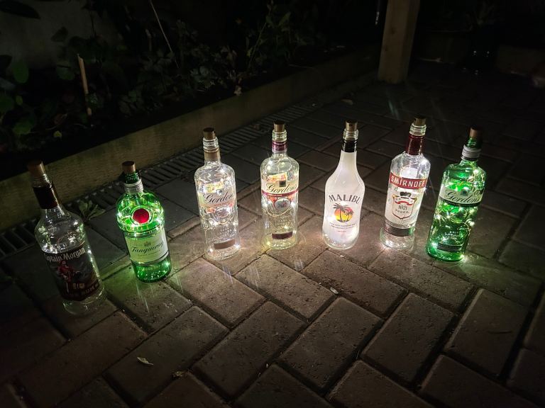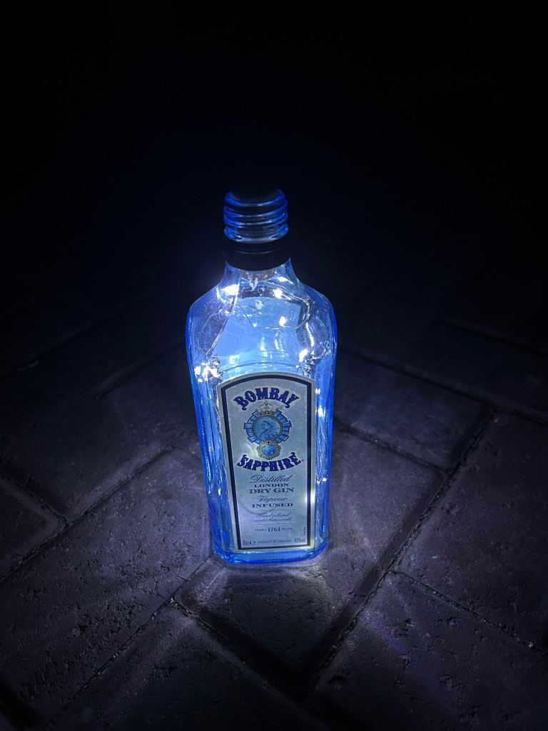 Bottle lights make unusual gift large selection available of different brands create atmospheric backgrounds for patios or anywhere indoors £3 each 15 now left to choose from courvoisier cognac, bombay saphire blue,the kraken black rum,archers schnapps,jagermeister(2bottles),monkey shoulder,gordons special london dry gin green, gordons premium pink, gordons white prach, smirnoff vodka(2 bottles), captain morgans dark rum , malibu, and tanqueray dried gin green. May cansider offer for multiple purchases or entire collection collect from bh14 0pn
