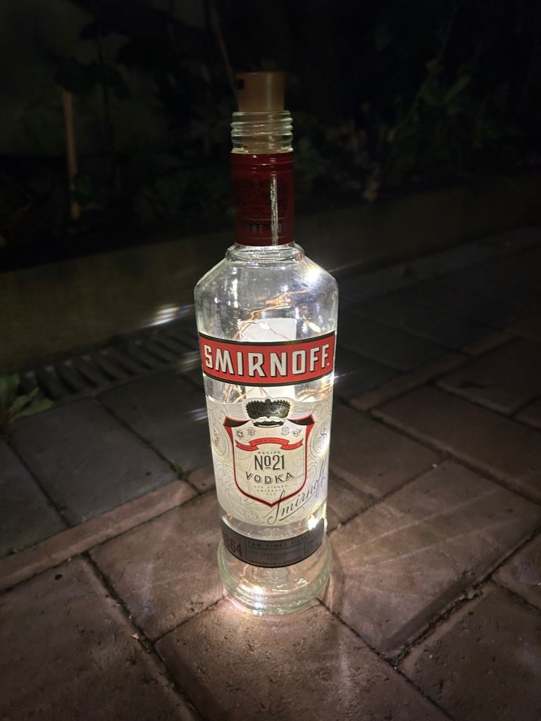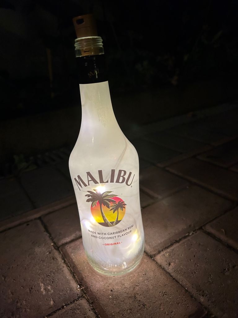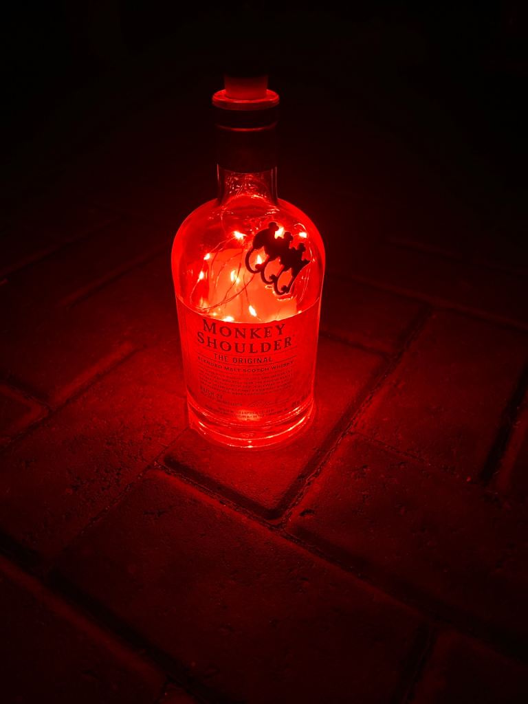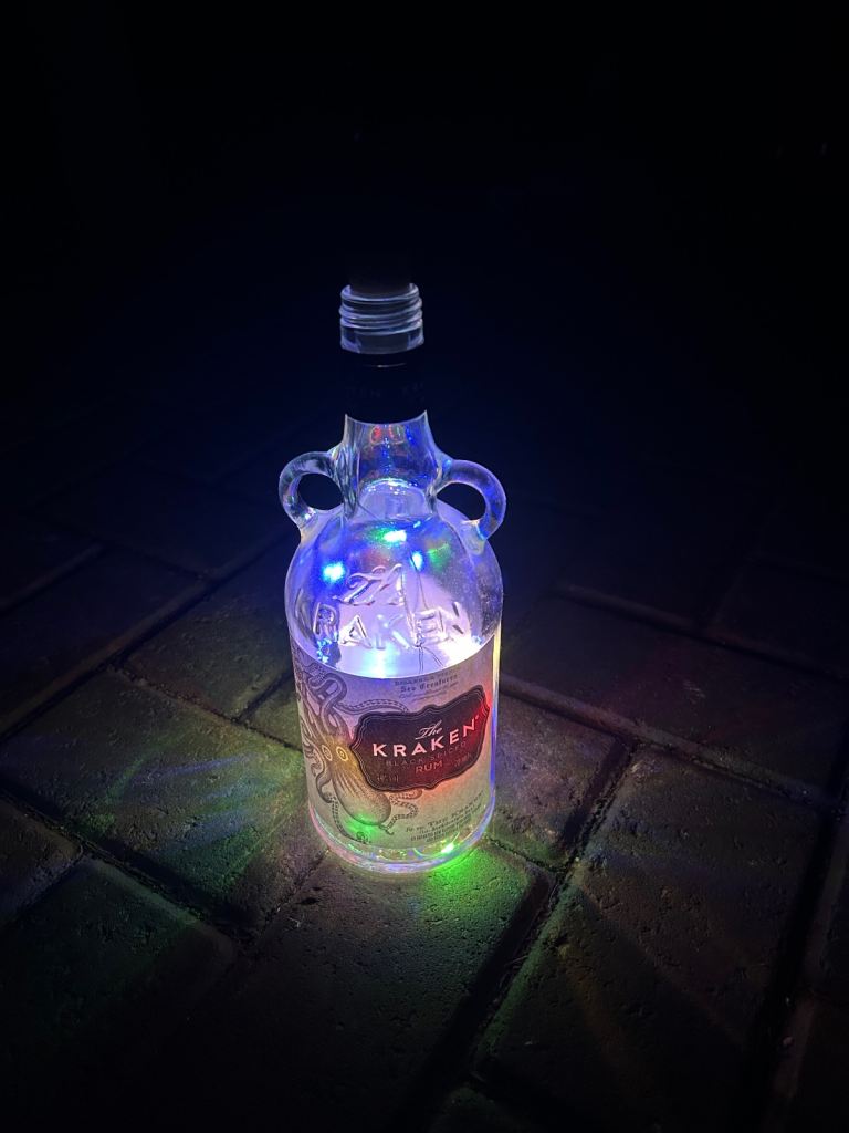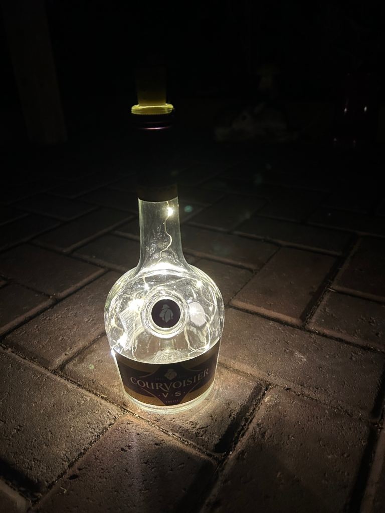 Bottle lights make unusual gift large selection available of different brands create atmospheric backgrounds for patios or anywhere indoors £3 each 15 now left to choose from courvoisier cognac, bombay saphire blue,the kraken black rum,archers schnapps,jagermeister(2bottles),monkey shoulder,gordons special london dry gin green, gordons premium pink, gordons white prach, smirnoff vodka(2 bottles), captain morgans dark rum , malibu, and tanqueray dried gin green. May cansider offer for multiple purchases or entire collection collect from bh14 0pn