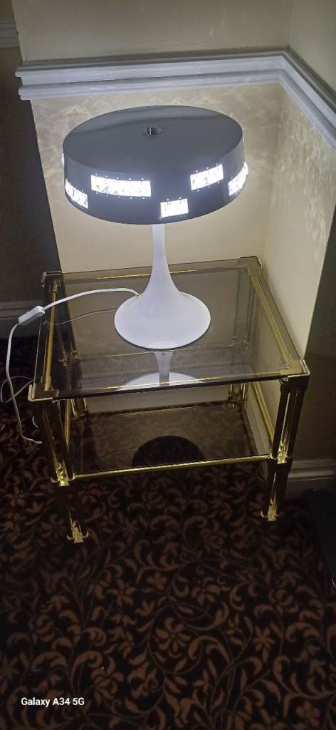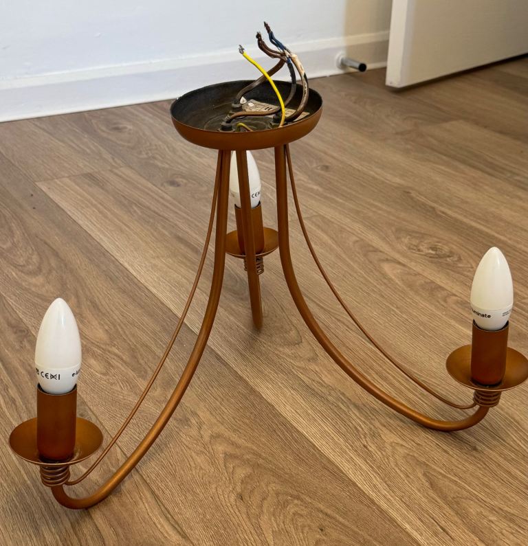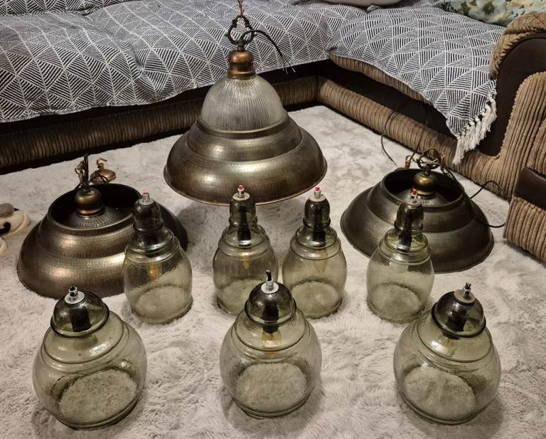 Two brass wall lights with shades, still in packaging £20. Collection from Broom.