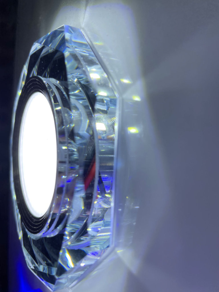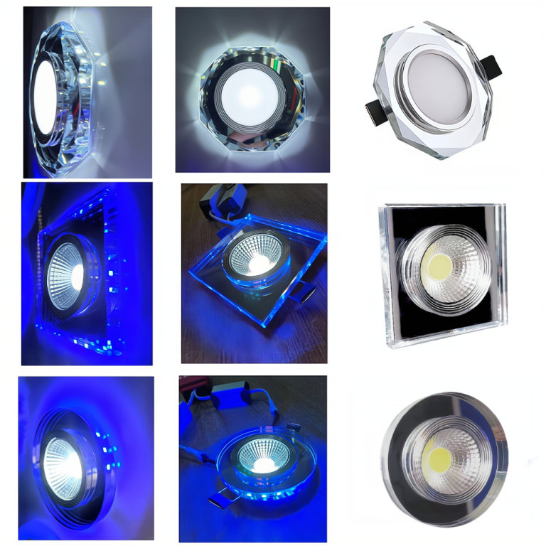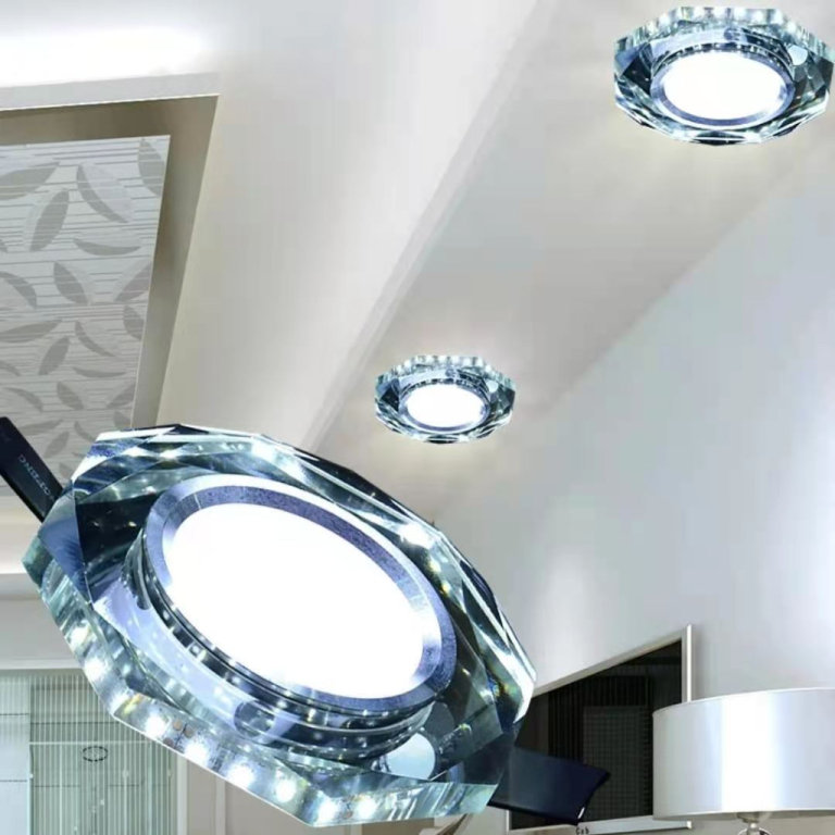 Enhance your space with the 9W Crystal Recessed Ceiling Light. With a slim design and K9 Glass Crystal housing, this light adds elegance to any room. Choose from round, square, or octagon shape with cool white or blue LED light. Includes 2 power supplies for inner and outer lights.