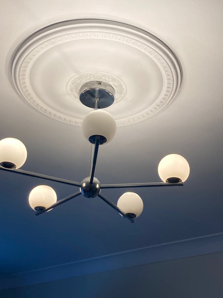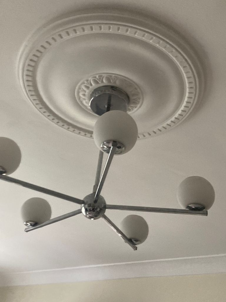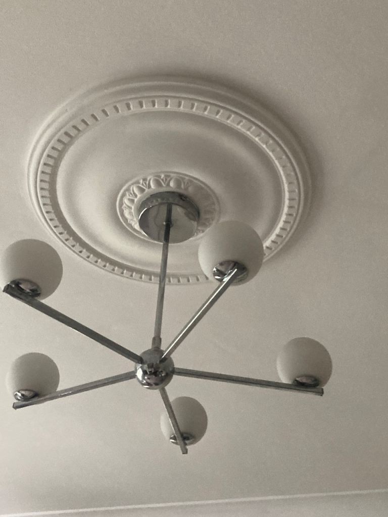 Ceiling light 5 arms bulbs include chrome and white