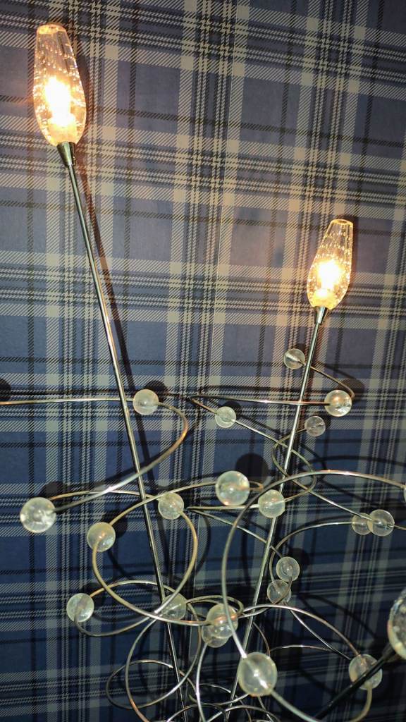 Glass ceiling light and matching floor lamp.