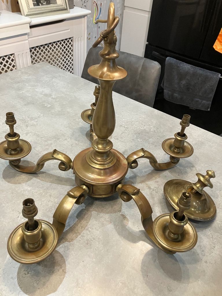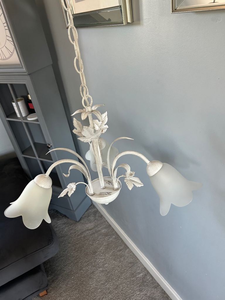 2 x Matching 5 tier lights. Good quality. Brushed chrome effect with white opaque glass shades.