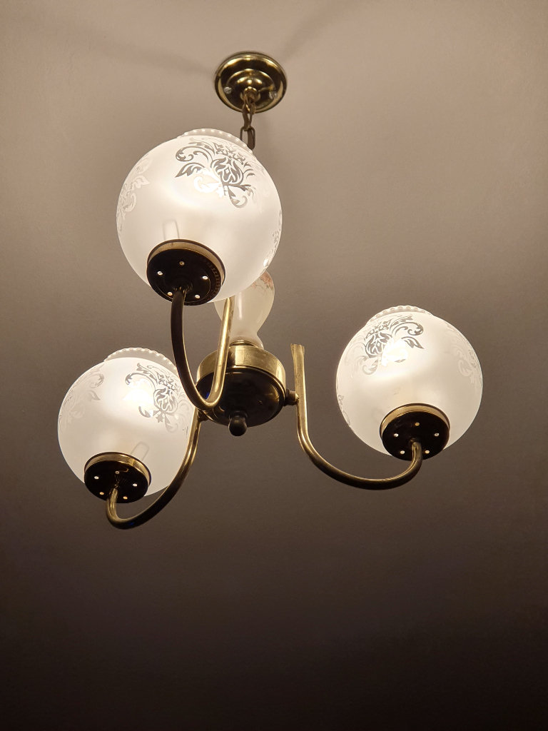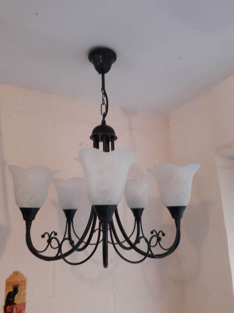 1 hanging light with 3 glass balls. Working perfectly selling as got new ones. No faults with them or scratches or chips on them