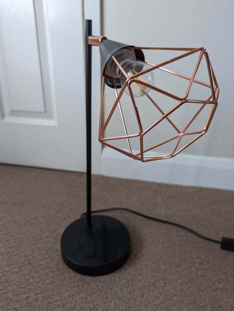 Copper Industrial Cage Table lamp in excellent condition with vintage filament bulb