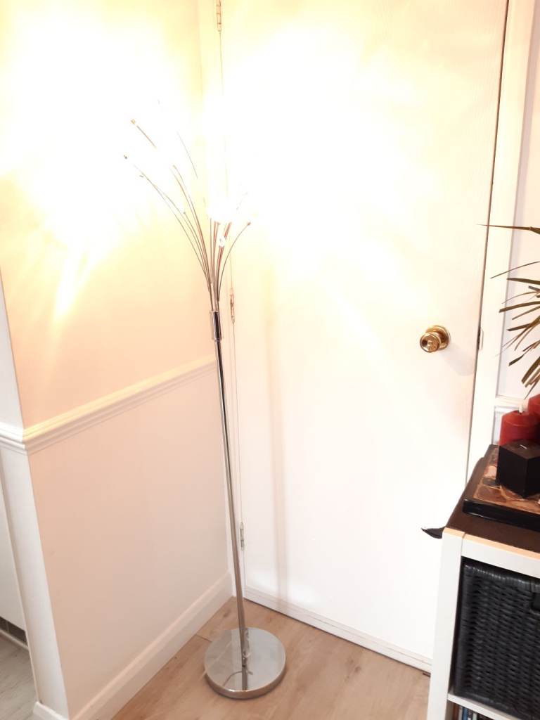 Attractive dimmable standard lamp (glow very low to very high - warm white). Mains plug