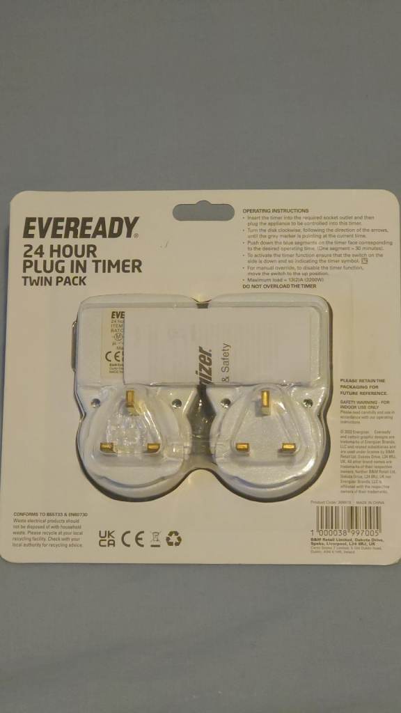 Eveready 24 Hour Plug In Timer x2. Unopened new condition fully sealed with original packaging and literature. Is excess to my needs.