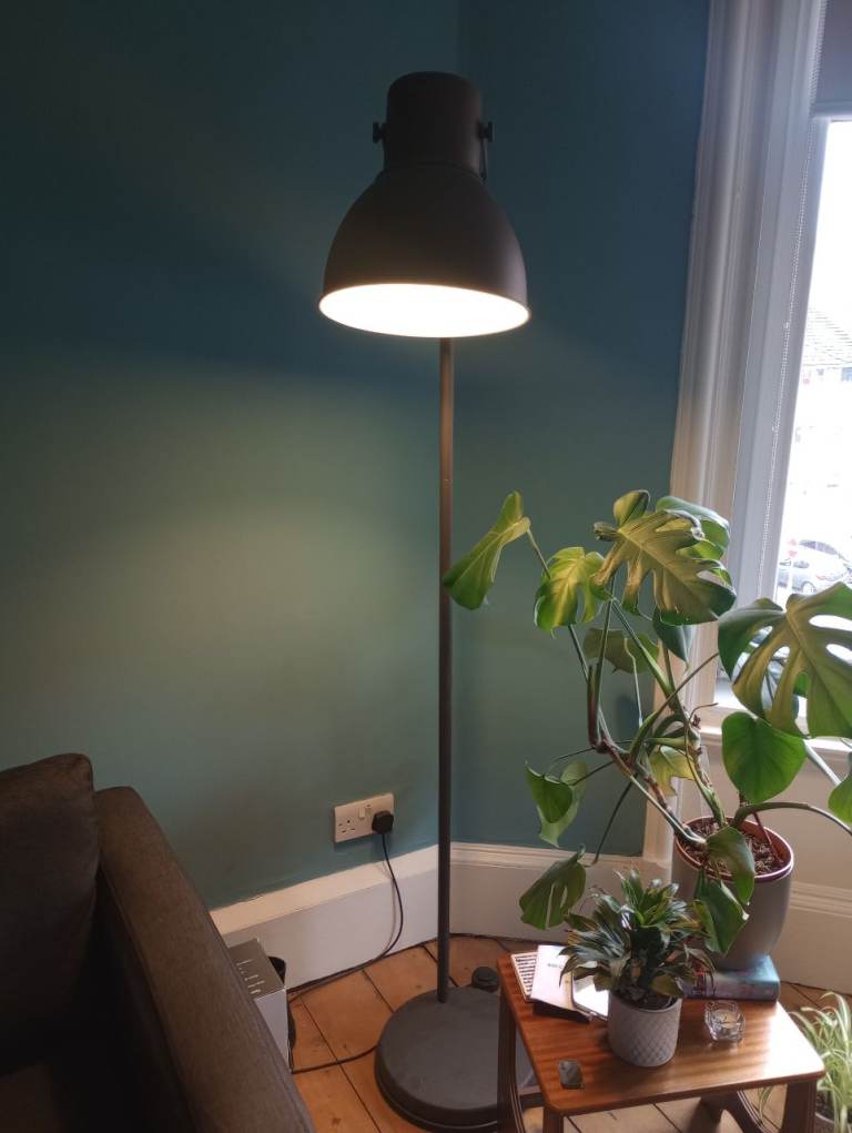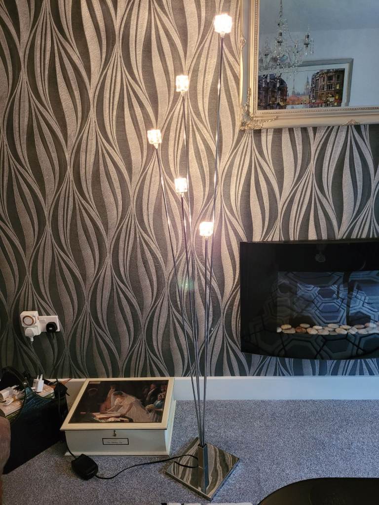This is a NEXT floor chrome cube uplighter with dimmer function.