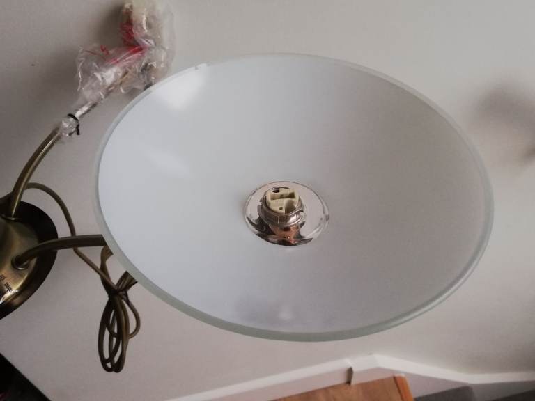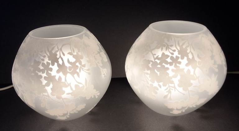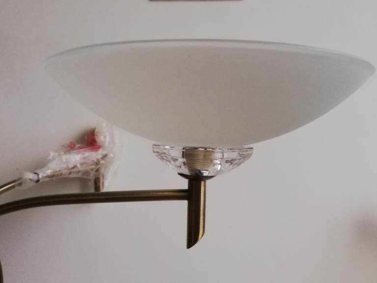 Features faceted glass scones under a satin opal glass bowl