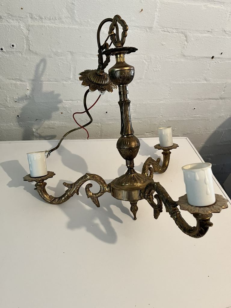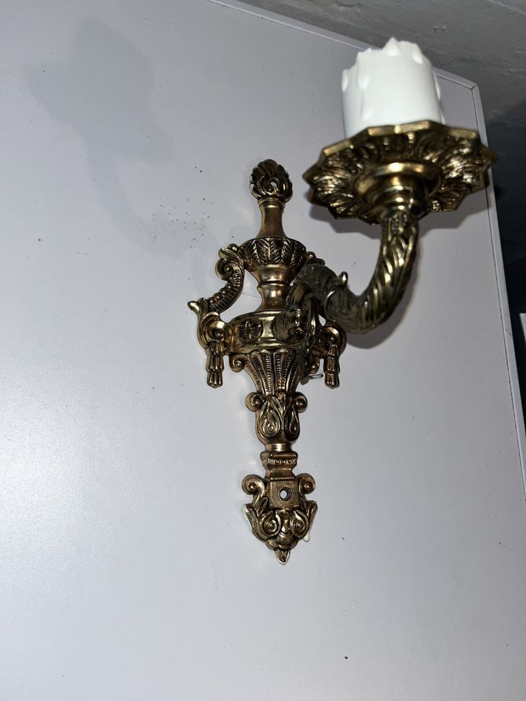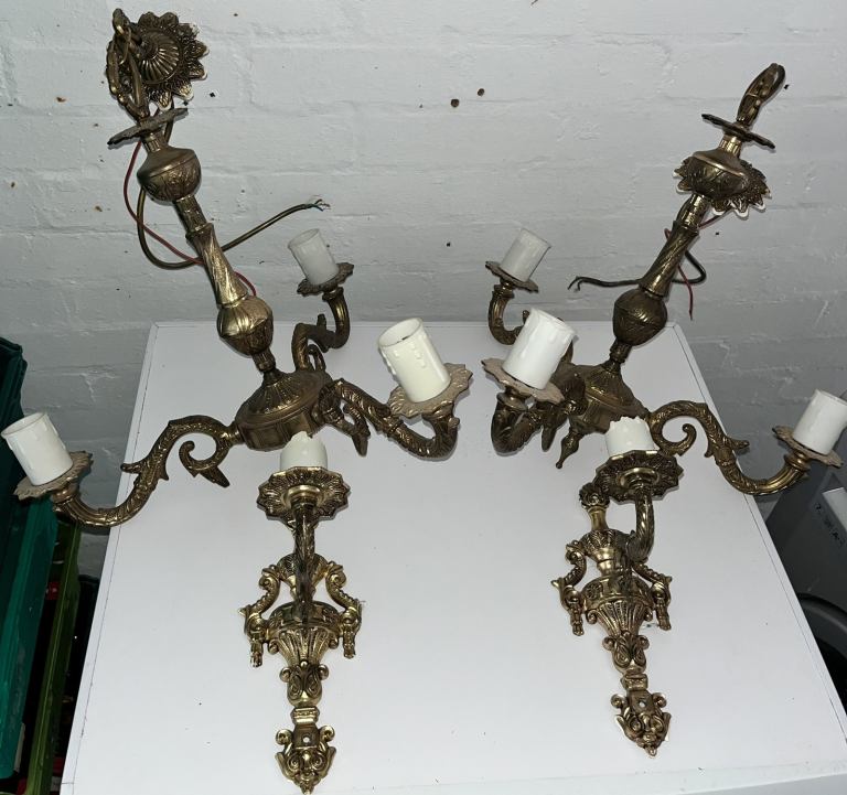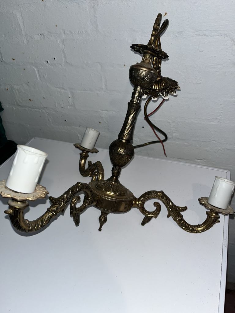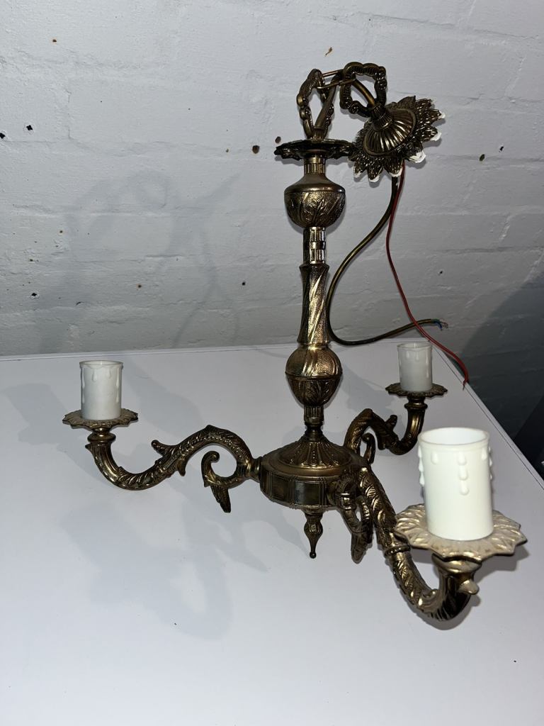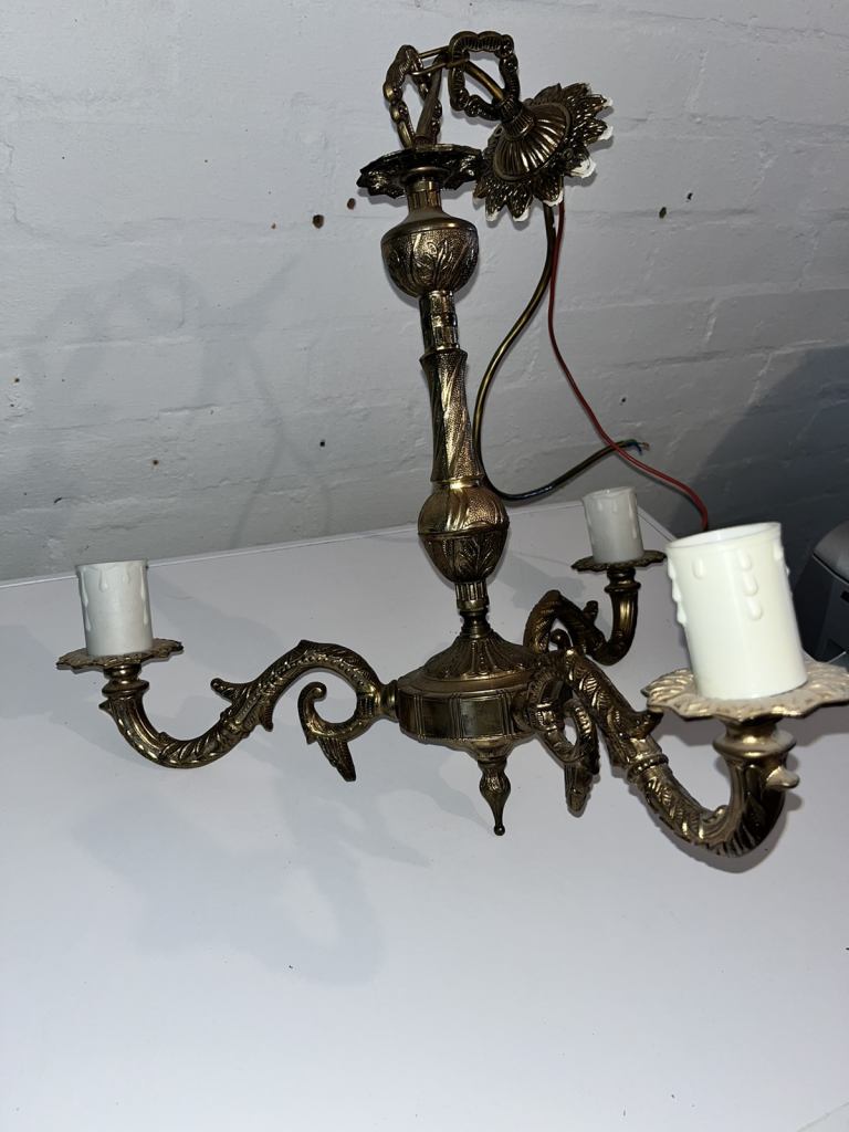 2 x matching French 3 arm brass chandeliers and 2 x wall lights.