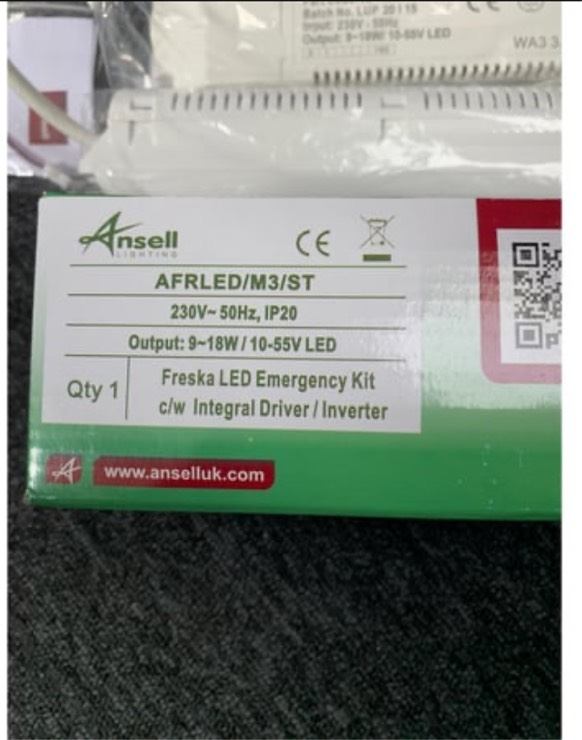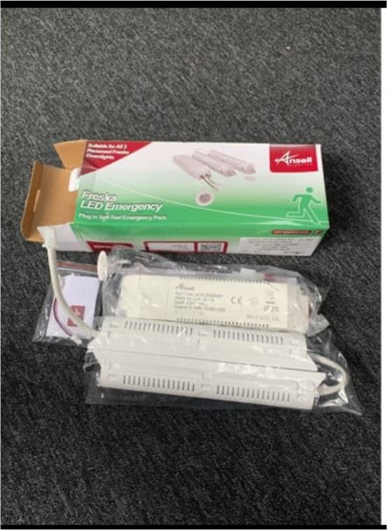 Freska led emergency lights. Job lot of 13. Water damaged boxes but ever inside undamaged and new.