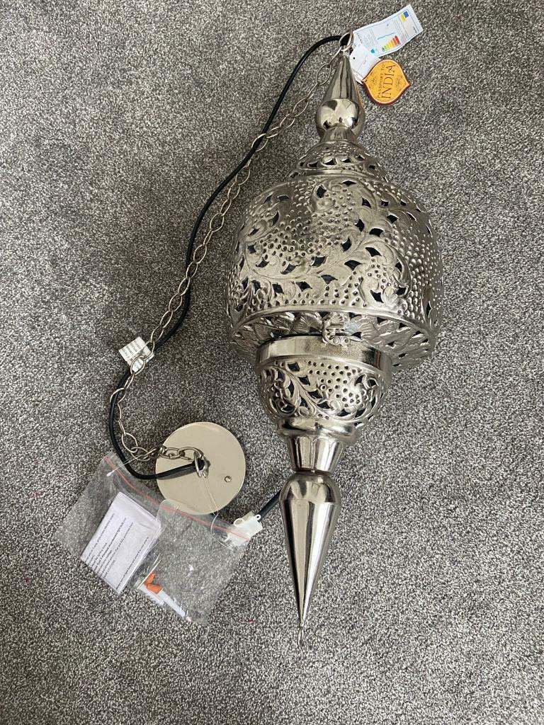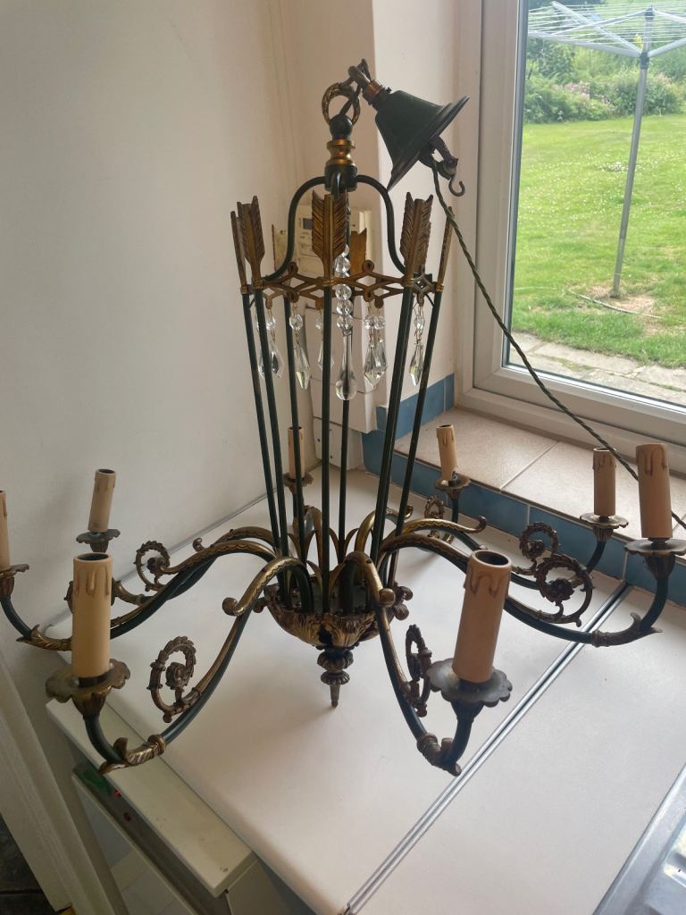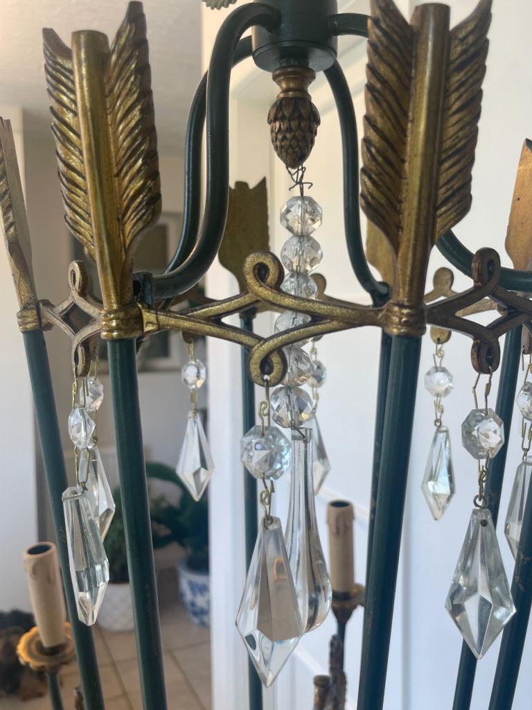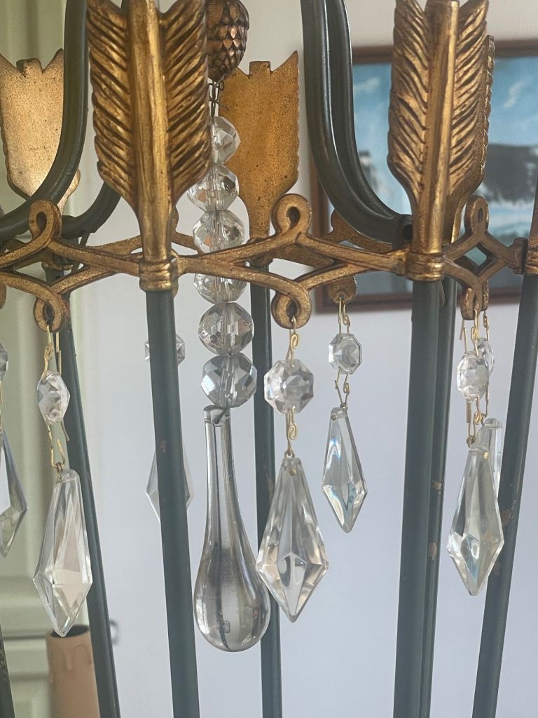 The detail is stunning with arrow heads pointing down to an ornate finial gilt base.. No damage , with the original cord wiring.