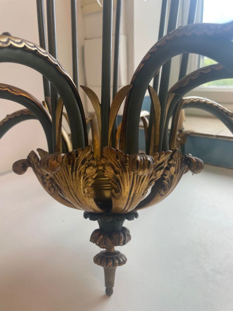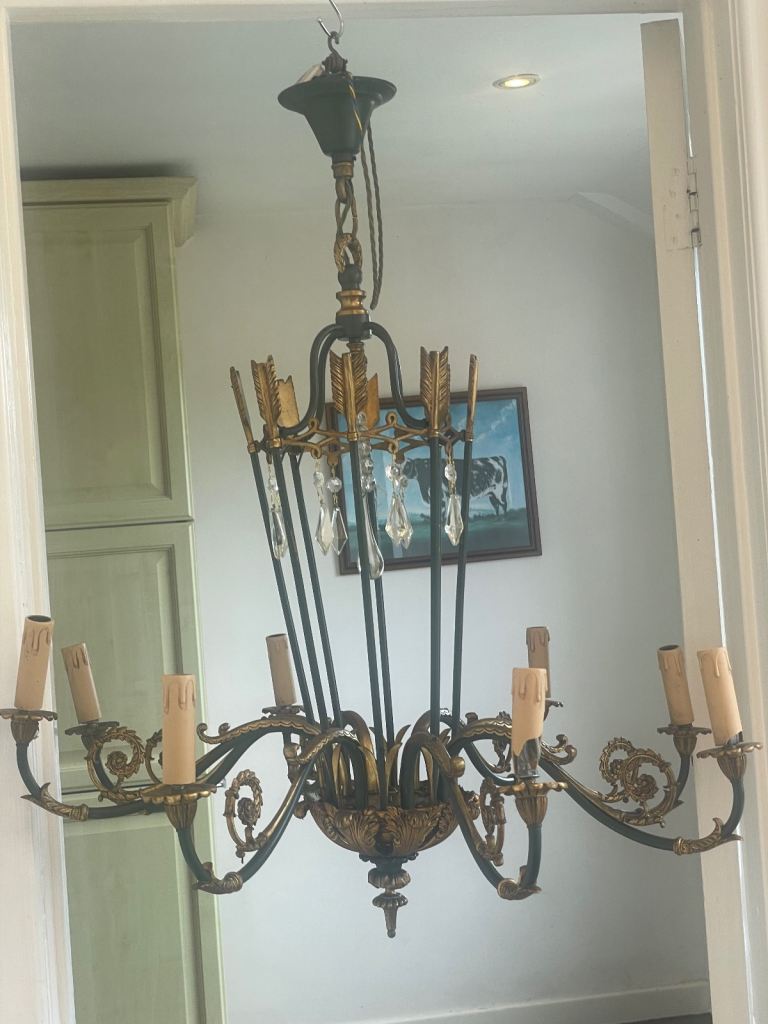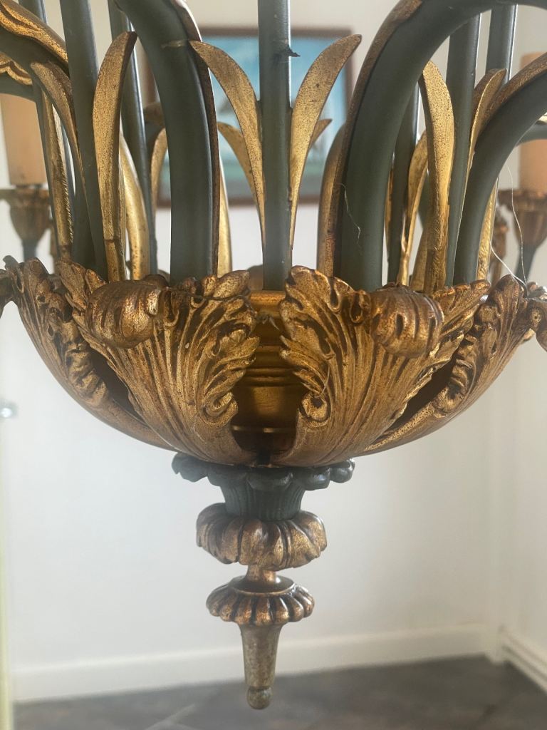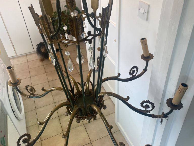 Huge Unique 8 arm Ornate Country House Antique Chandelier Dark Green And Gilt