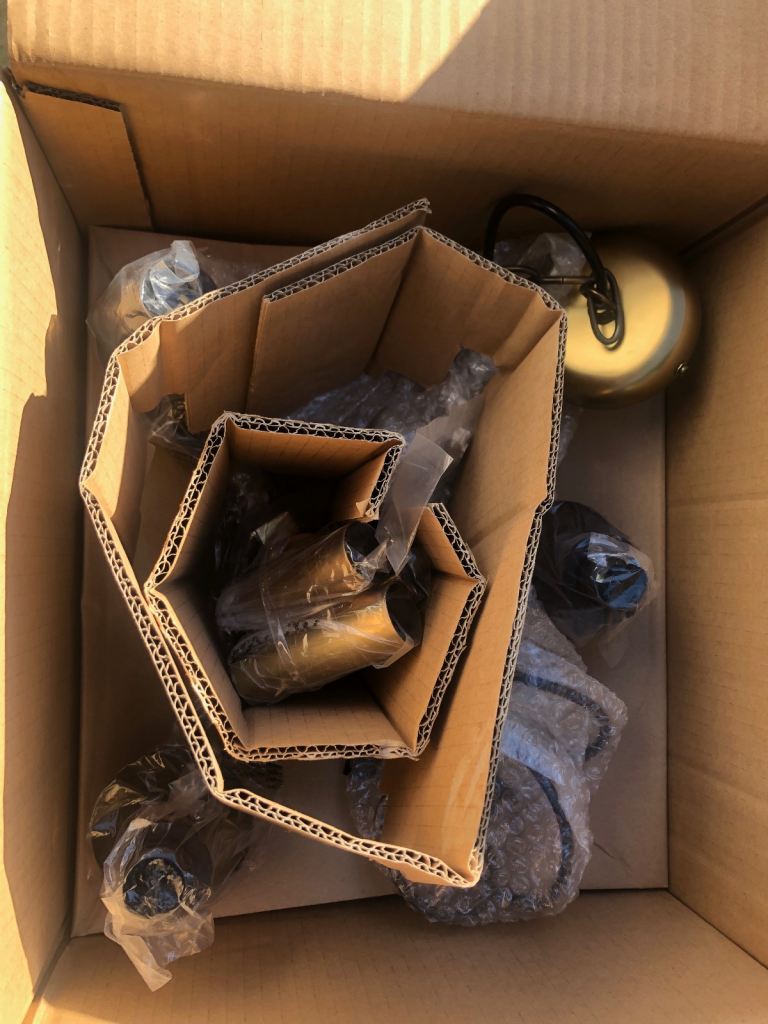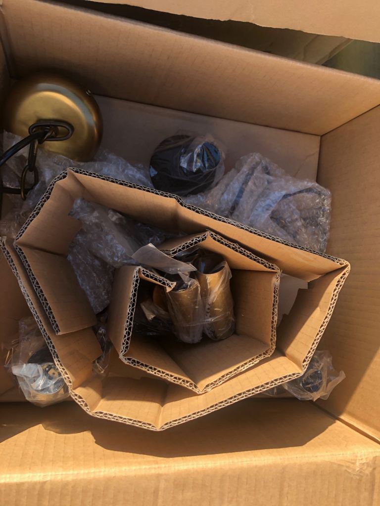 New and never used 3 light pendant from the Stanford antique brass range has beautifully curved arms and simple clean detailing.