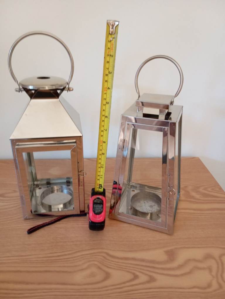 Metal chrome candle 🕯️ lanterns like new for inside or used outside glass 4 sides , lovely fur Christmas time etc