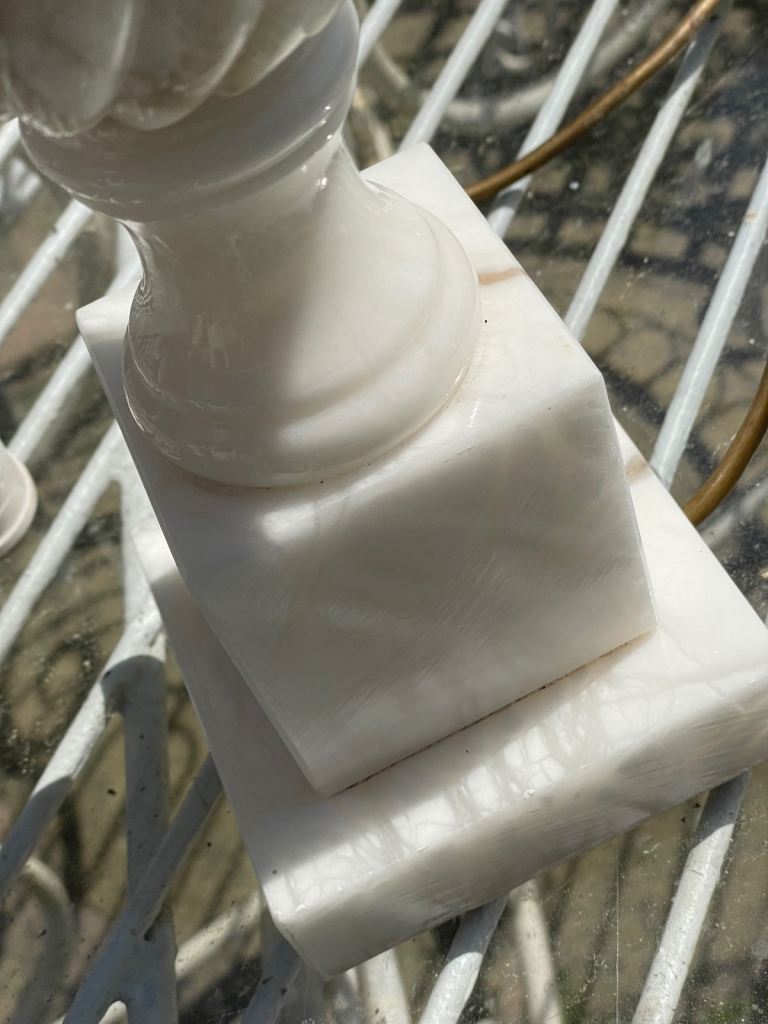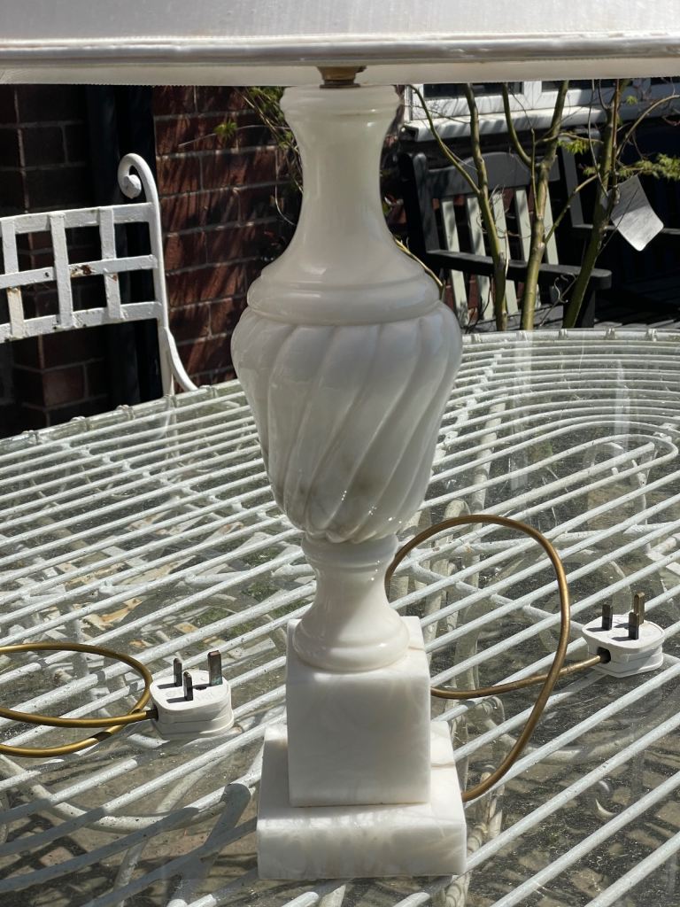 This is a lovely pair of vintage solid marble table lamps ,… very heavy.