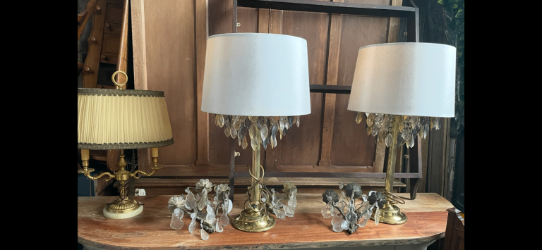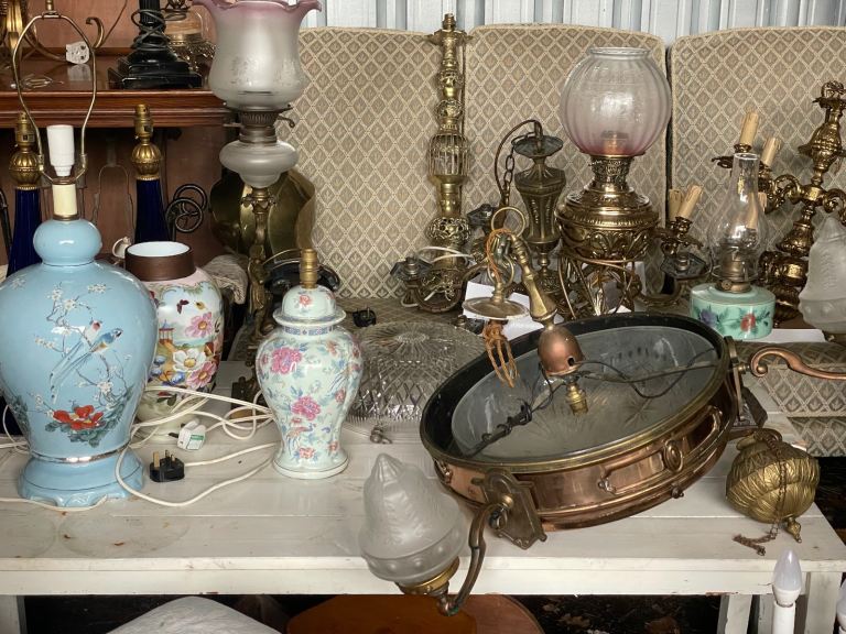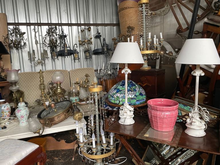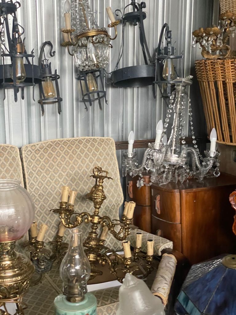 Large selection of chandeliers and table lamps