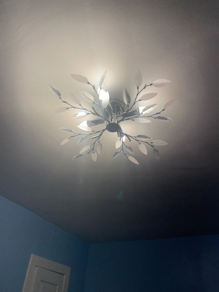 It has a chip to the very top of the chandelier as shown in the photos