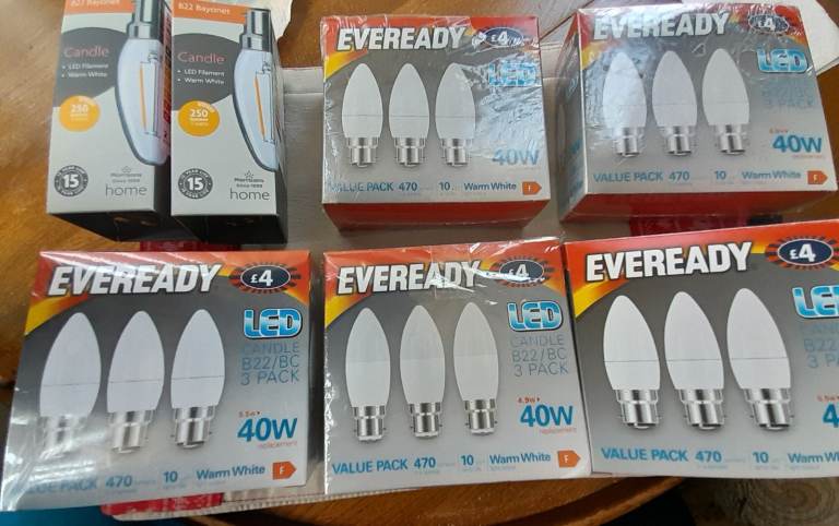 Candle shaped, bayonet fitting, B22, warm white, all checked and working.