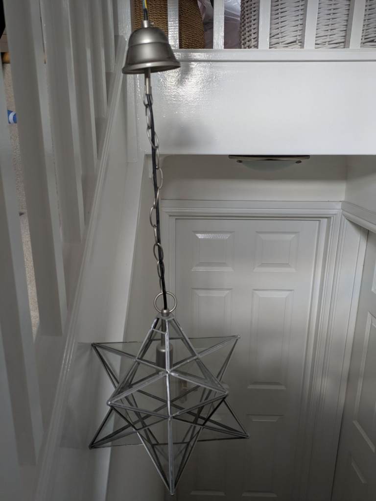 Chrome bistro style light fitting suitable for home or cafe/wine bar. Also new spare fitting but no glasses. Good condition.