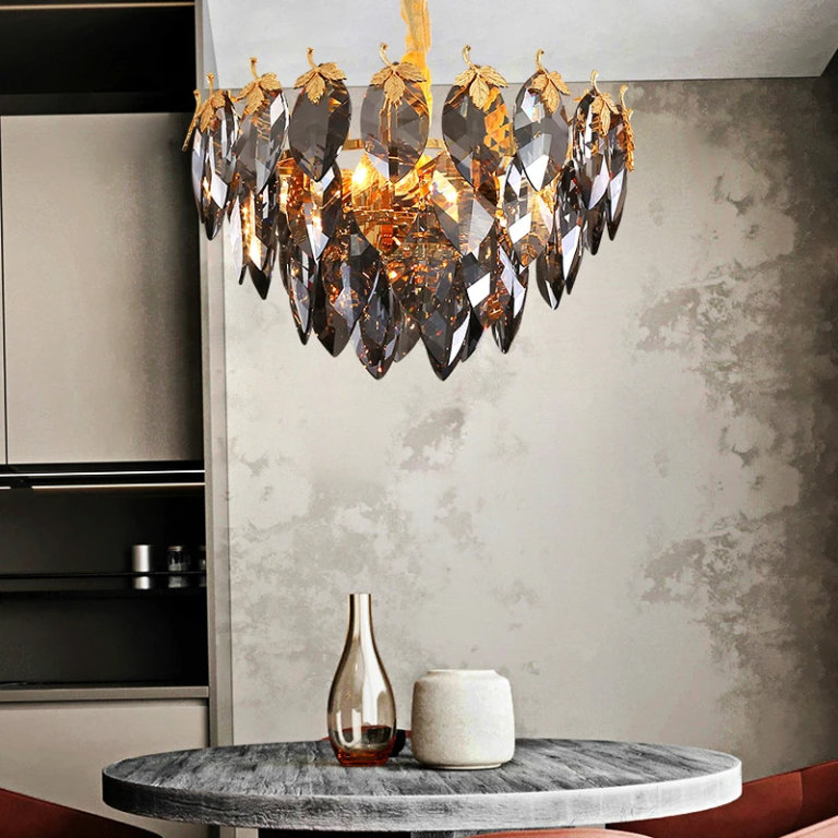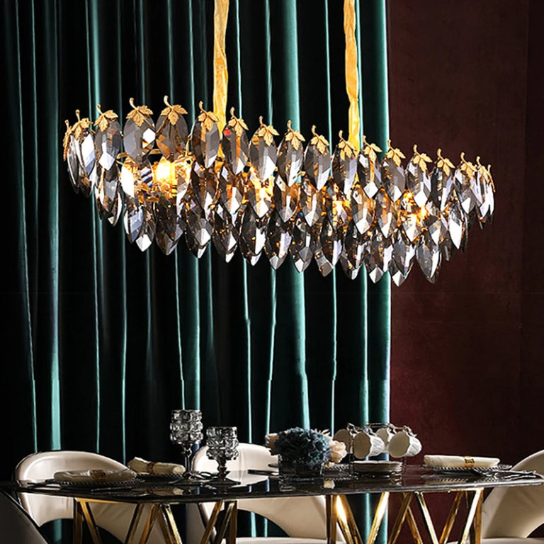 This chandelier is more than just a lighting fixture; it's a statement piece that adds a touch of glamour and allure to your home or space. Elevate your décor with the Marcellus Luxury Crystal Leaves Handcrafted Chandelier, where every shimmering leaf tells a story of timeless elegance and refinement.