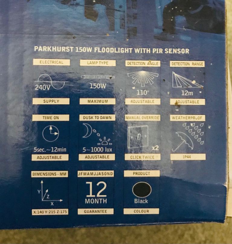 outside halogen black floodlight motion sensor brand new never used accidental buy.