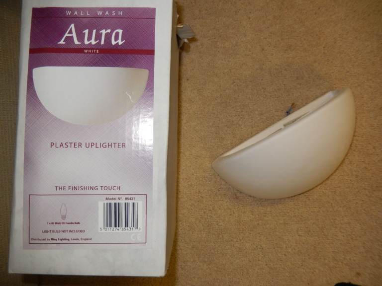 Pair of matching plaster uplighter fittings. Approx 23cm width. See picture for further details and size. Only used briefly when we lived in a rental house. Sell new for around £20 each