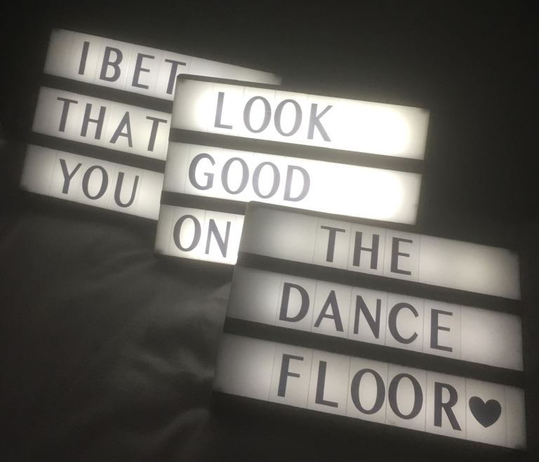Three Party Light Up Boxes containing Letters, Numbers and Emojis.