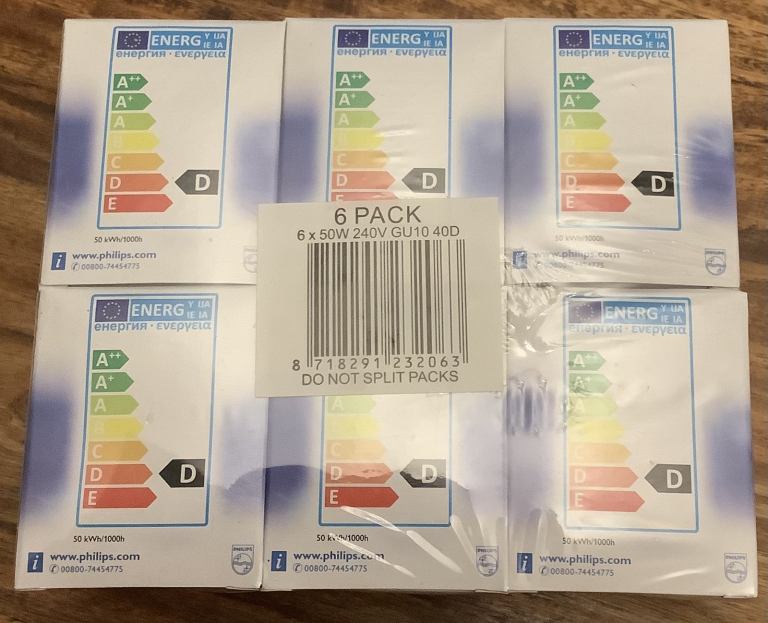 Philips 6 Pack 50W 240V GU10 Spot Light Bulbs