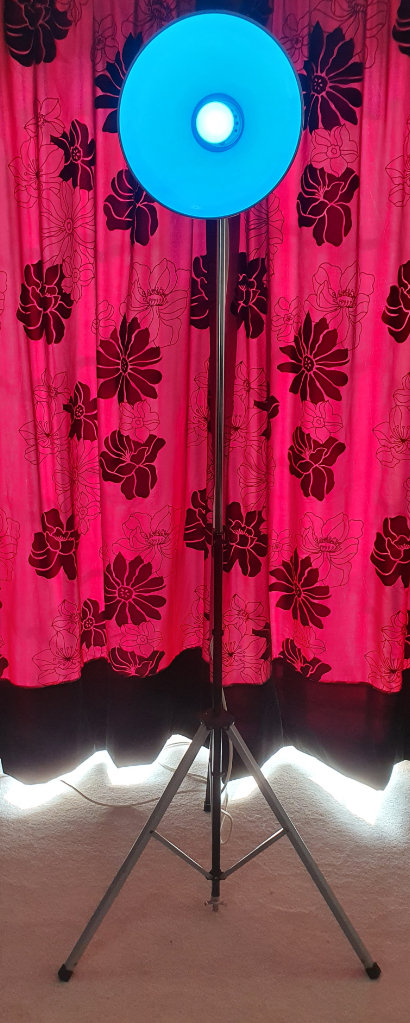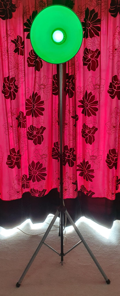 Height adjustable retro studio style feature light with remote control operation and colour changing bulb (can fix on one colour). Ideal for modern apartment/house. Light head can be angled to your choice.