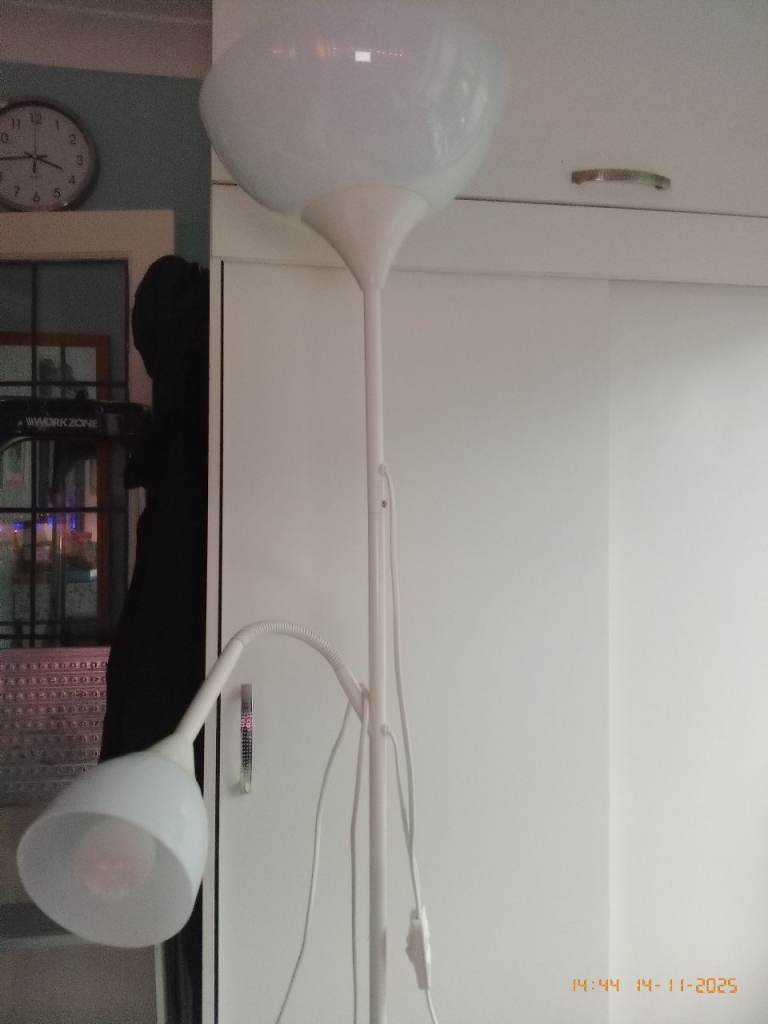 Uplighter with reading or crafting light. Metal pole with switch for each light separately. Good condition, LED bulbs. Doesn't take up much space.
