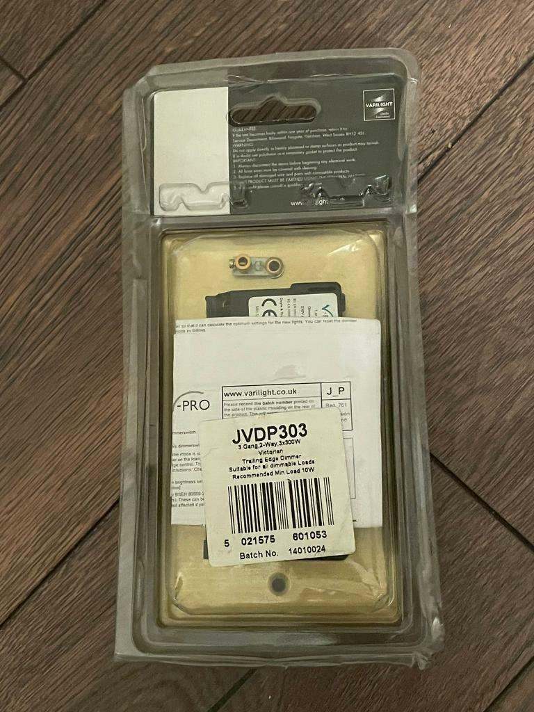 3 Gang, 2-Way, 3x300W Varilight Victorian Edge Dimmer. Suitable for all dimmable loads. Recommended minimum load of 10W. Comes new and boxed with instruction booklet. £15