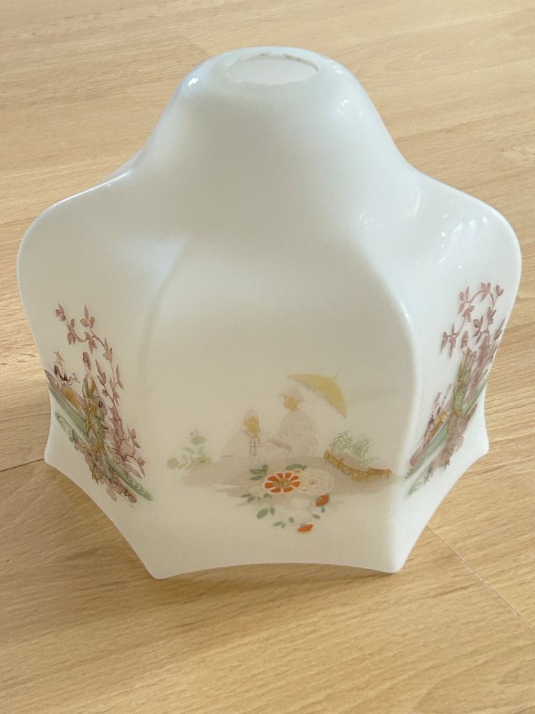 Vintage Antique Frosted Glass Oriental Scenes Lamp Shade