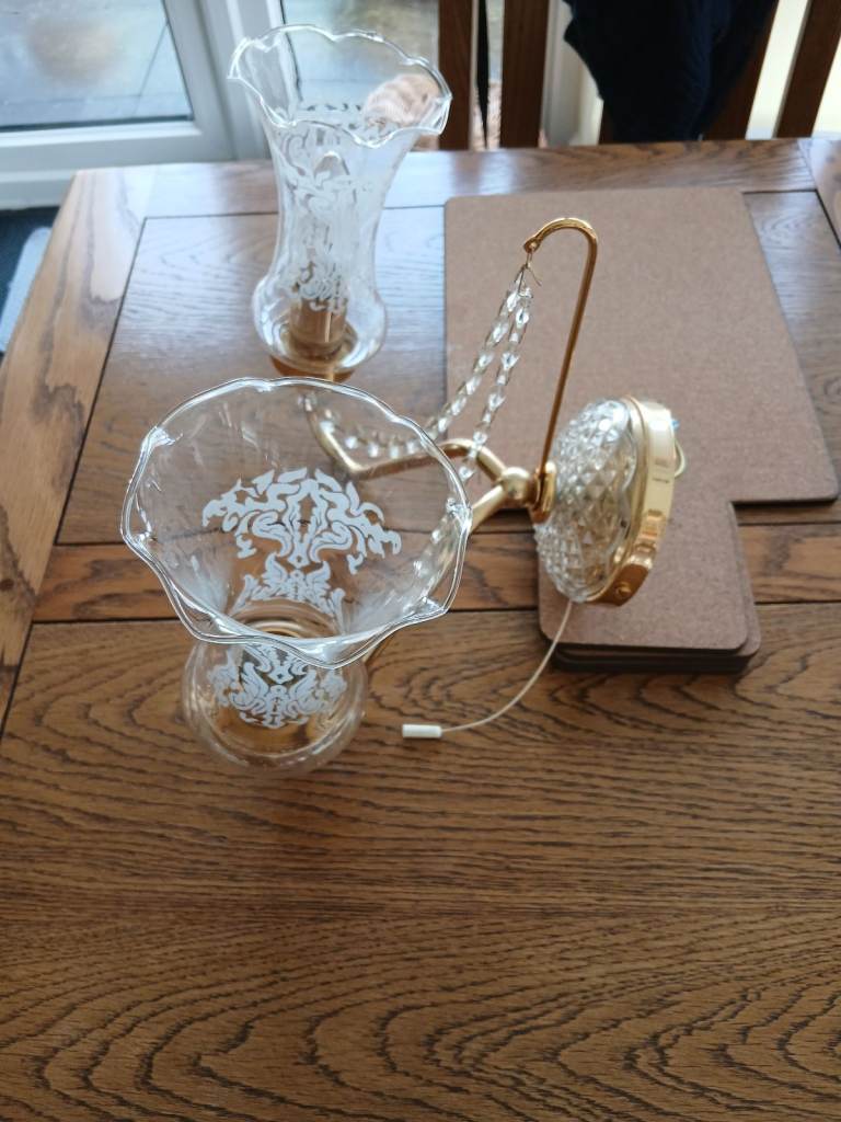 A beautiful gold plated wall light ,with 2 designed glass bulb covers