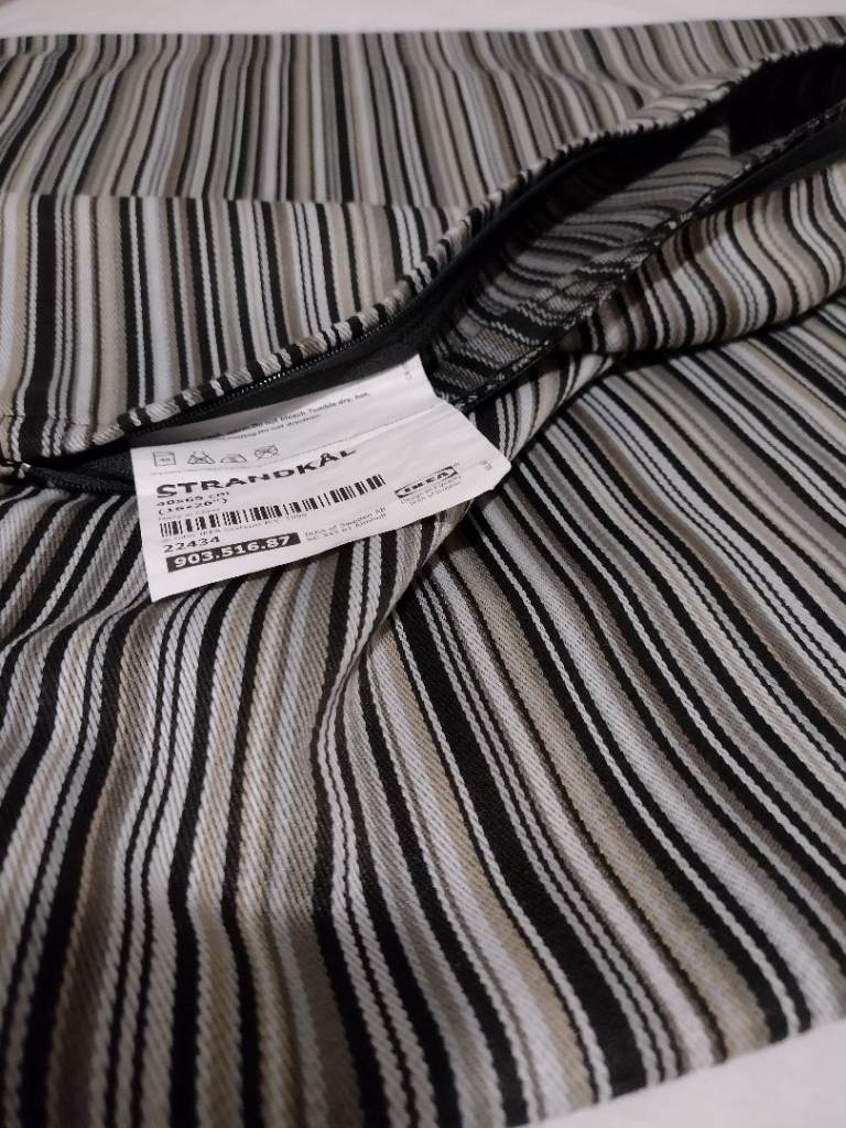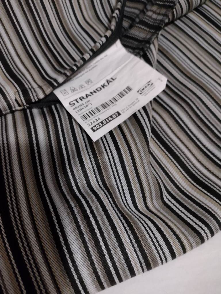 Two IKEA Strandkal cushion covers. 40 x 65 cms. Stripes in brown, beige and black with zip for easy washing. Machine wash.