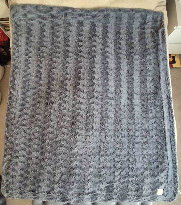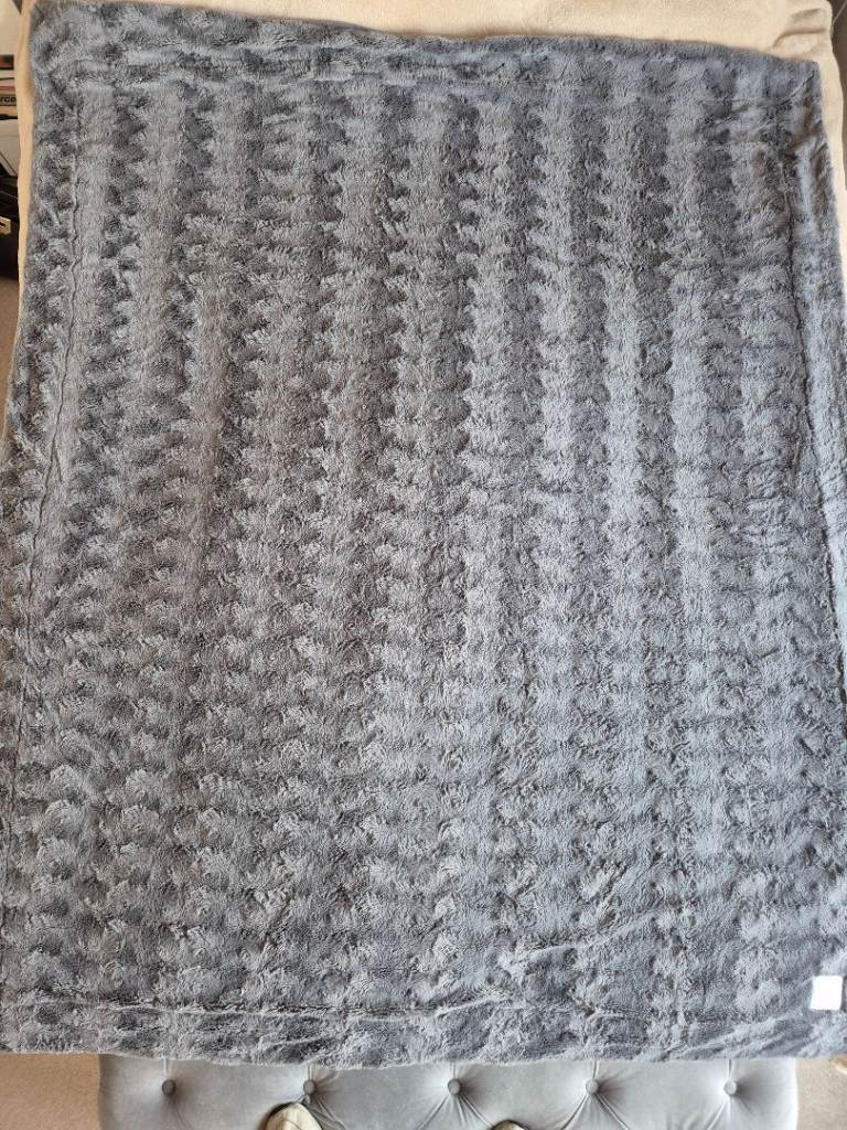 Brand new never used. Please see photos for visual description (the throw is shown on a king size bed for convenience).
