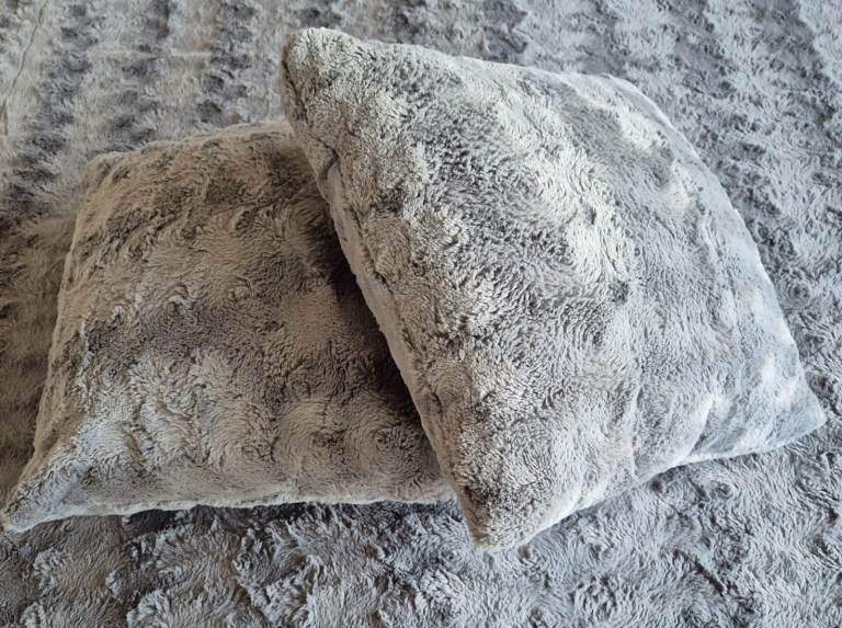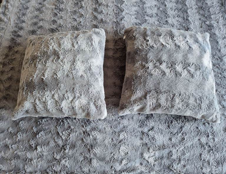 Double Bed Throw and Two Matching Cushions Grey as new.