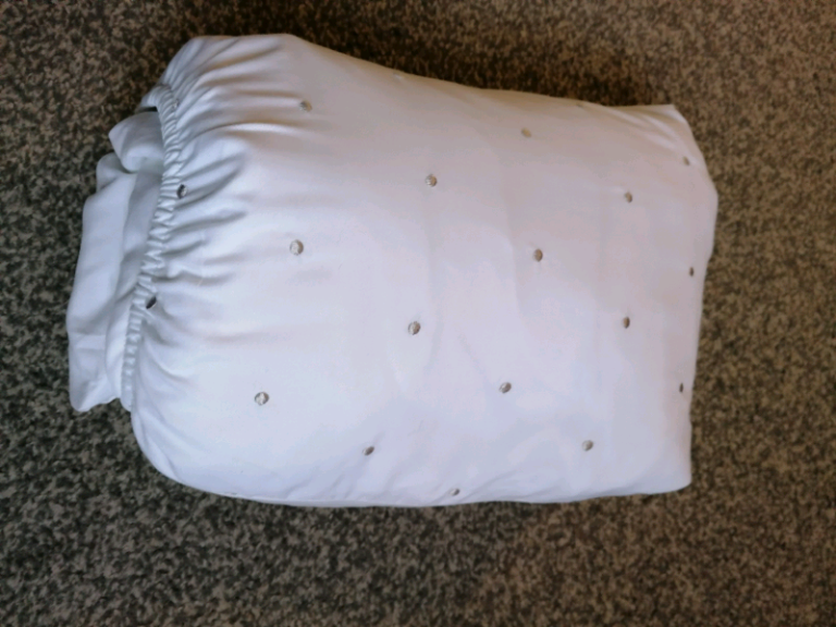 Double white duvet cover. Only used once. Lovely soft duvet cover. With grey polka dot stitching.pick up only.