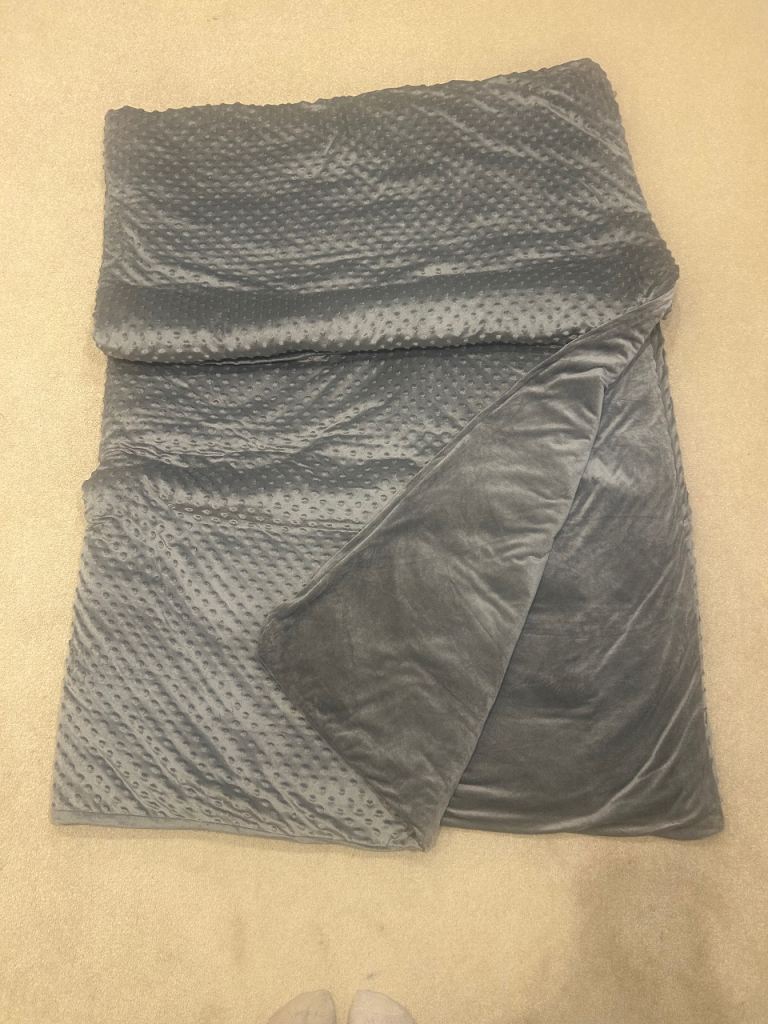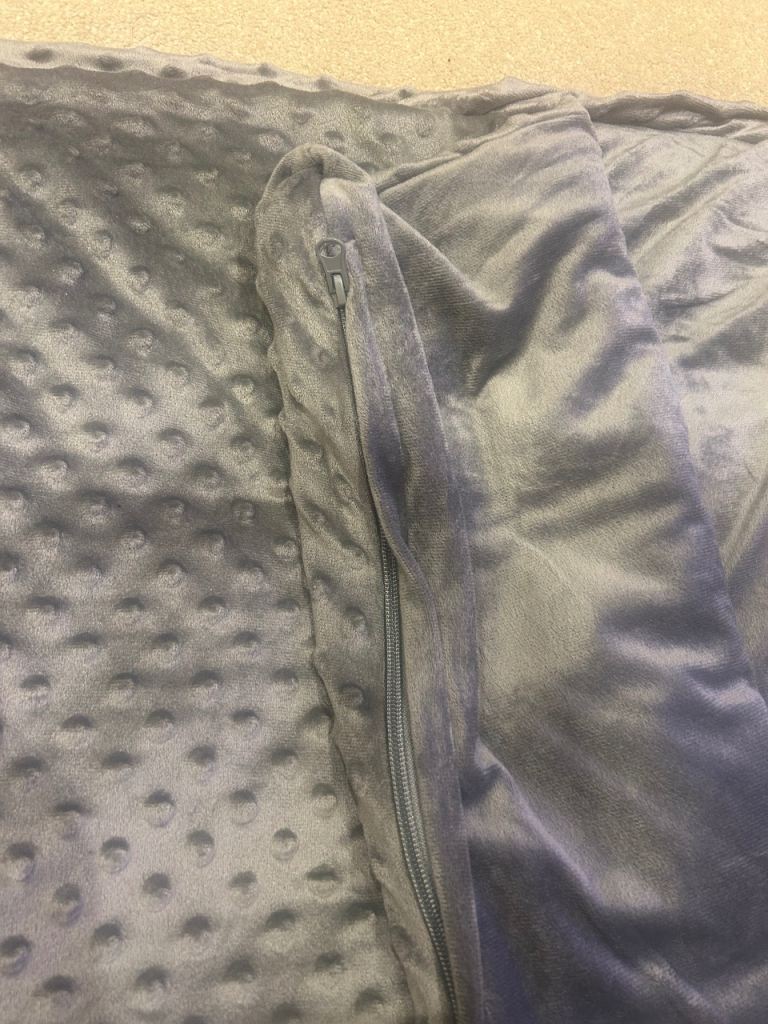Grey, dotted texture on one side, smooth on the other. Zip fasten to wash.