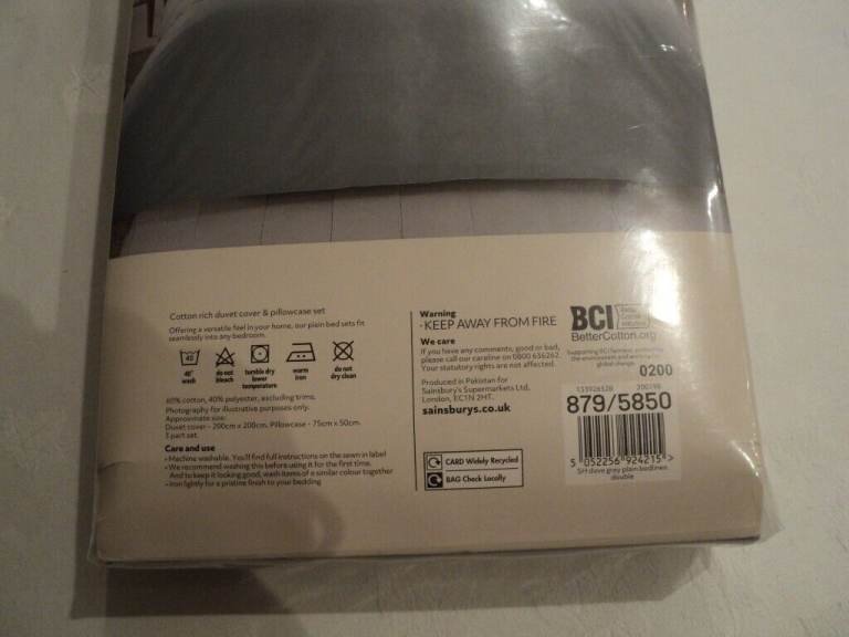 Brand New and Unopened,in excellent condition and as new. Also selling an identical Double Grey Cotton 3 Part Duvet Cover and Pillowcase Set, please see my other items.