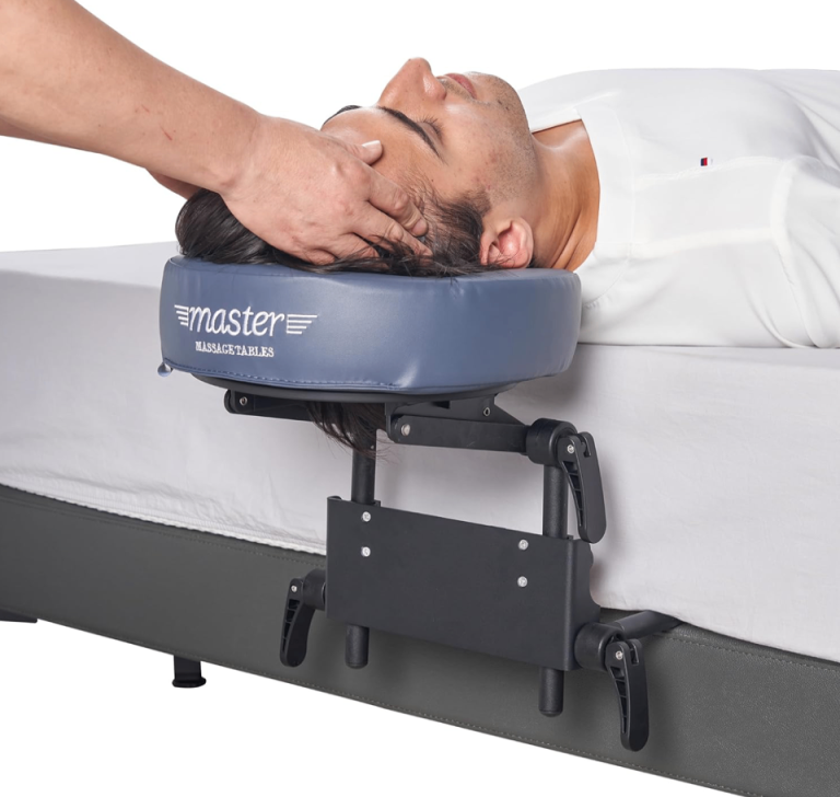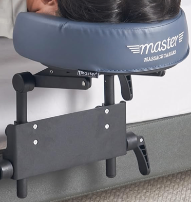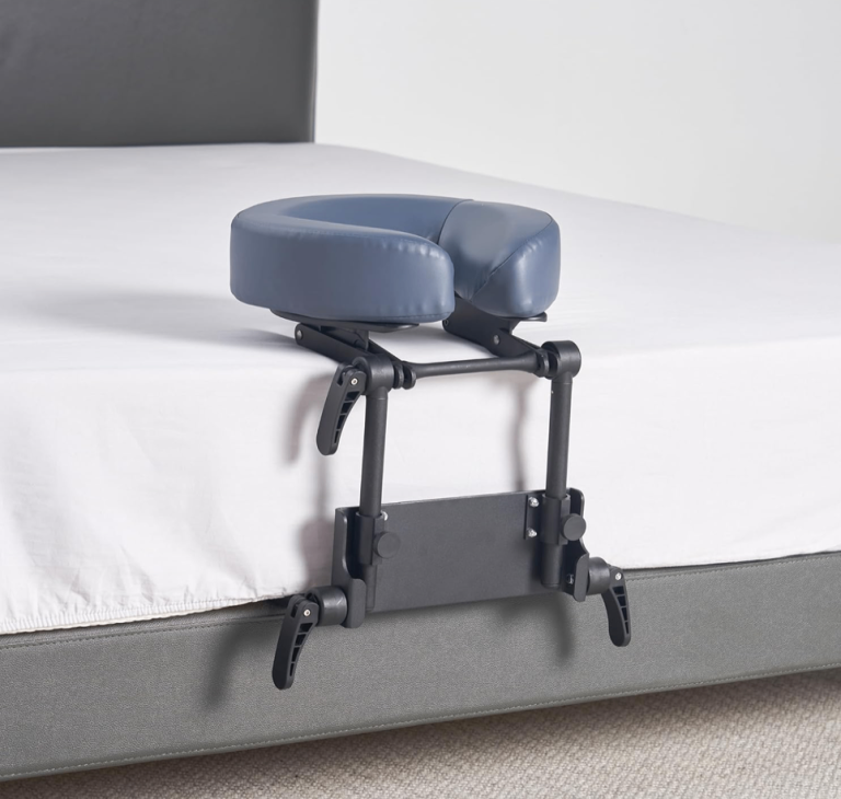 I bring a professional adjustable face cradle that attaches securely to the bed, ensuring proper head and neck support β just like a massage table.