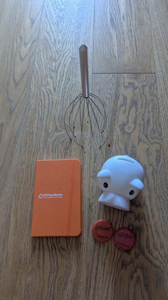 A fantastic collection of LGBTQ+ themed items including clothing, accessories, and Pride memorabilia. Most items are new or barely used. Perfect as a gift or for personal use!